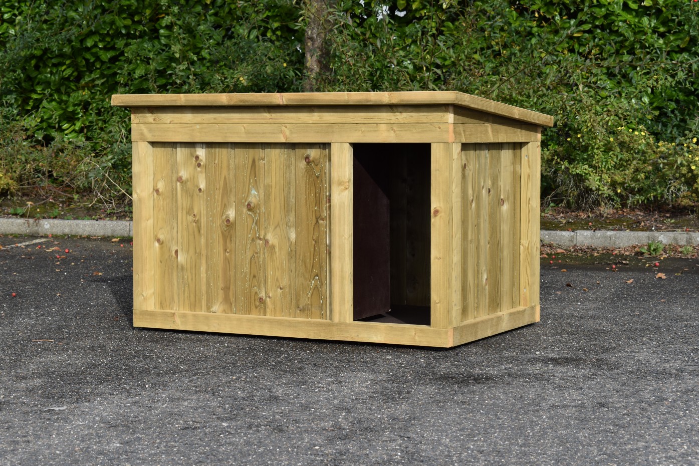 Hundehütte Block Large ist ein Qualitätshütte, herstellt aus imprägniertes Fichtenholz. Es ist beide im Sommer und im Winter geeignet für große Hunden wie z. B. Hirtenhund, Retriever, Rottweiler, Boxer, Sennenhund, um nur einige zu nennen. Der Hundehütte ist verfügbar im mehrere Abmessungen.