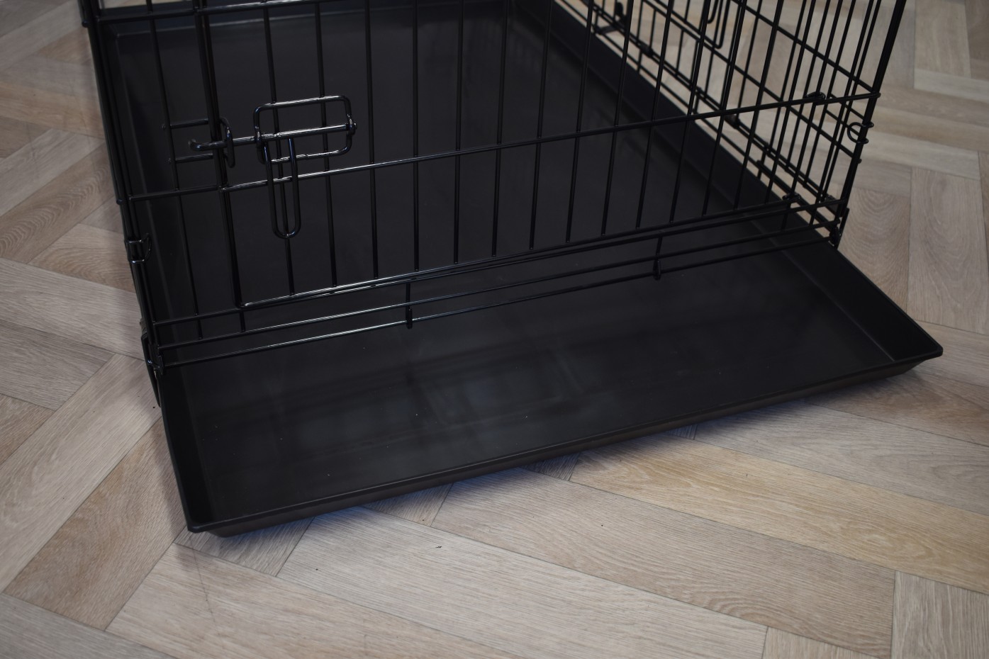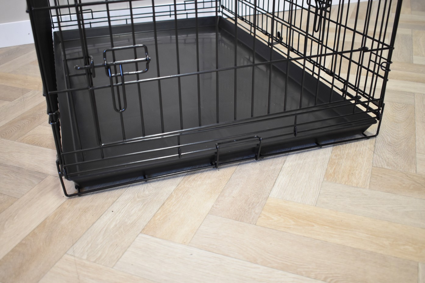 - Dieser Hundekäfig verfügt über eine stabile, herausziehbare Kunststofflade