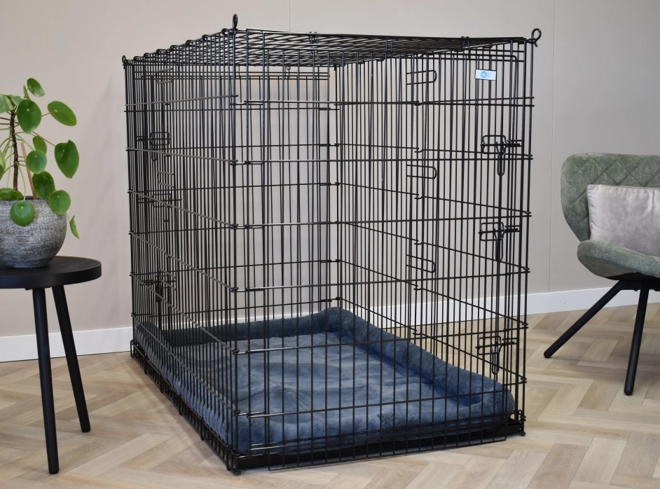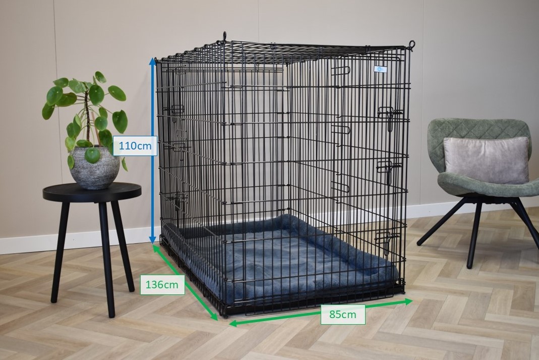 Diese extra große Hundebox von nicht weniger als 136x85x110cm (LxBxH) ist eine riesige Hundebox. Selbst der größte Hund passt in diesen Drahtkäfig. Diese große XXL-Hundehütte ist mit 2 Türen mit soliden 3-Doppelverschlüssen ausgestattet.