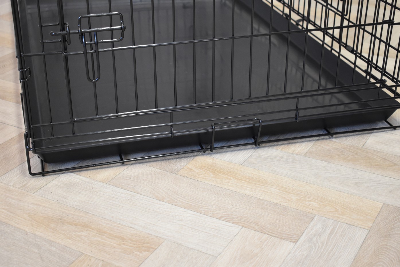 - Dieser Hundekäfig verfügt über eine stabile, herausziehbare Kunststofflade