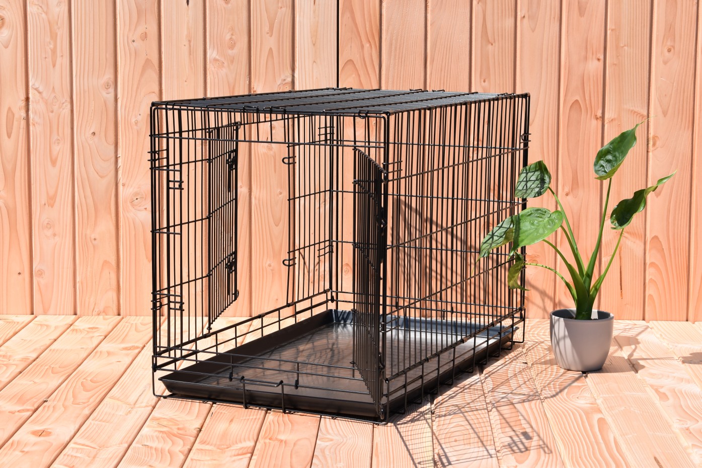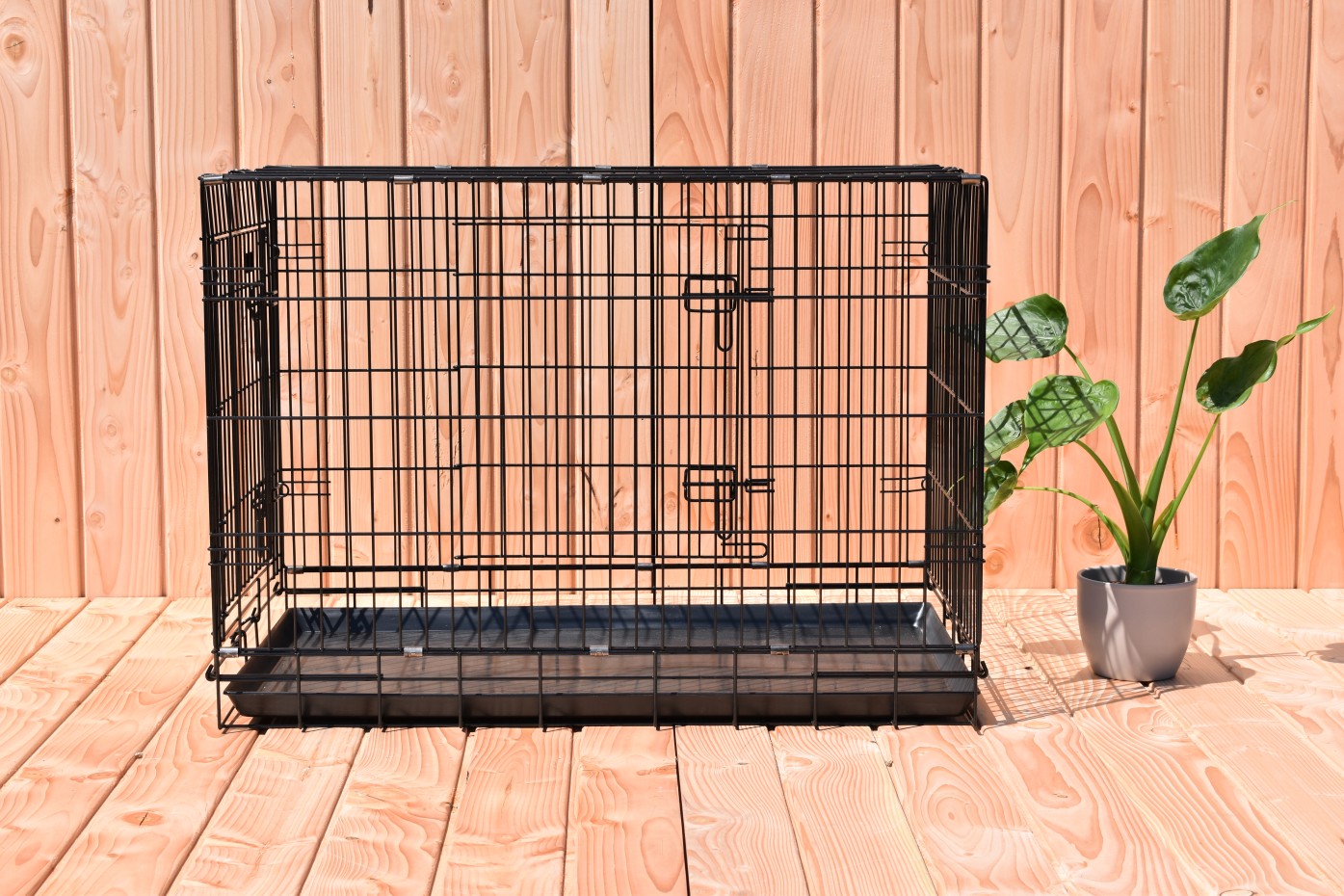 - Dieser Hundekäfig verfügt über eine stabile, herausziehbare Kunststofflade