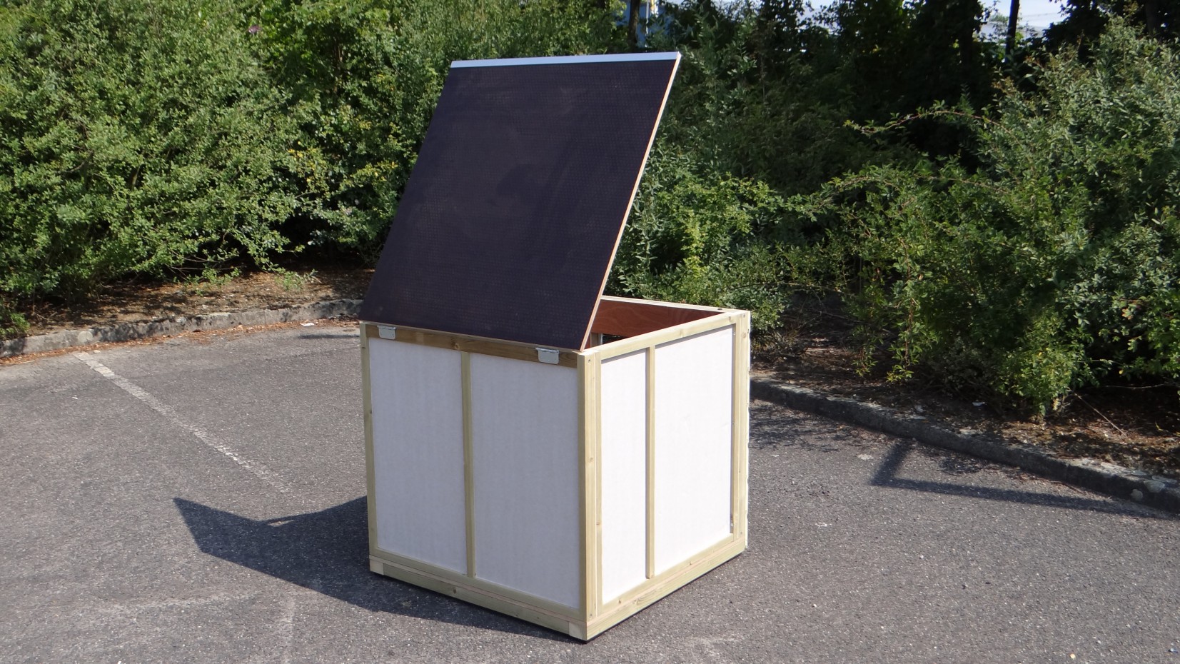 - Das Innere ist mit hartem Sperrholz ausgekleidet.