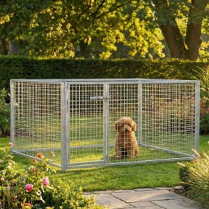 Diese galvanisierte Welpenauslauf von 2x1,5m ist ein schöne Platz für Ihre Welp! Der Auslauf besteht aus 2 Paneele von 1,5m und 2 Paneele von 2m.