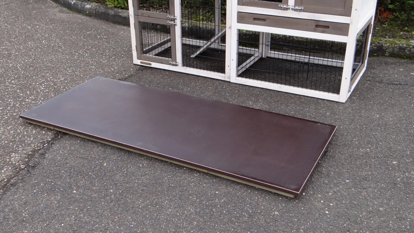 Eine Bodenplatte für Kaninchenstall Prestige Small Doppel, mit den Abmessungen 226x62cm (3 Teile), bietet Ihre Kaninchen ein angenehmeres Gefühl als an kalten Pflasterung oder Boden. Auch ist eine Bodenplatte sehr geeignet als Boden, wenn Sie den Kaninchenstall Innen aufstellen. (Es ist eine flache Platte, es kann sein das Urin abläuft und den Boden beschädigt). Der Bodenplatte besteht aus mehrere Teile.
