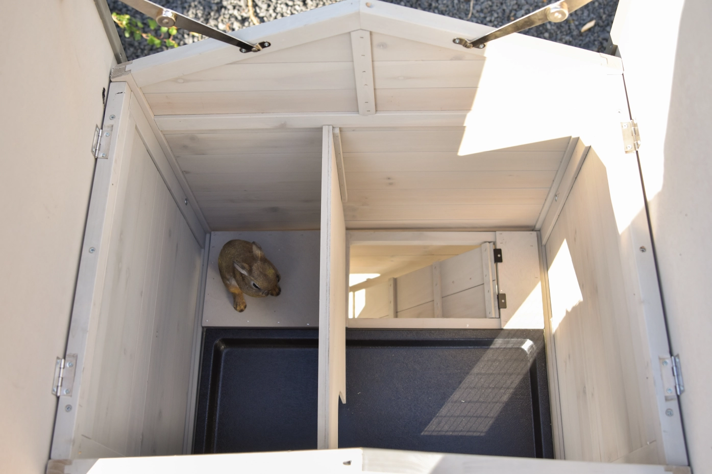 - Die Türen dieses Kaninchenstalls sind mit doppelten Schieberiegeln ausgestattet