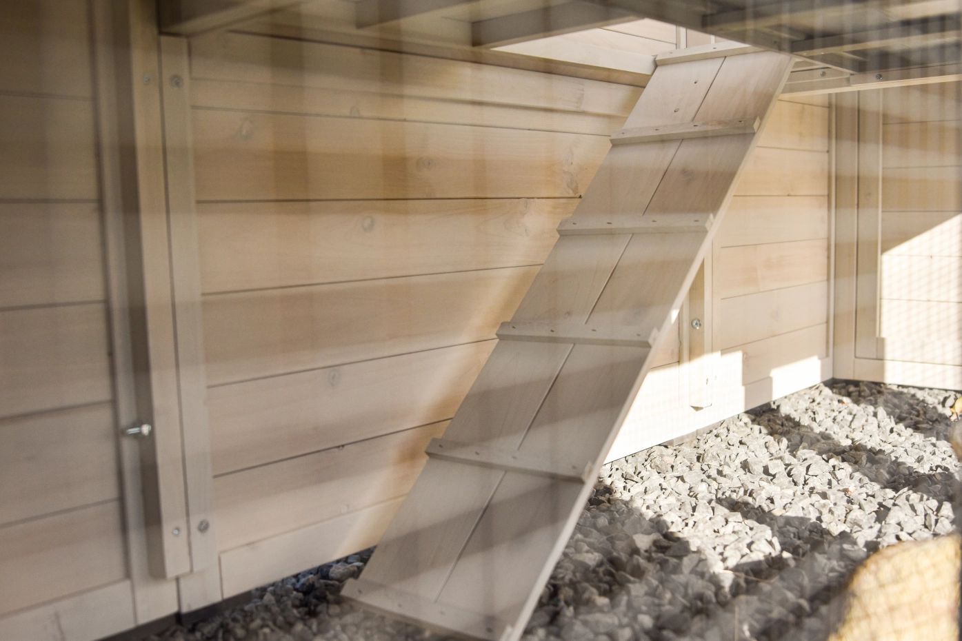 - Wenn möglich stellen Sie den Stall auf einem geschützten Platz.