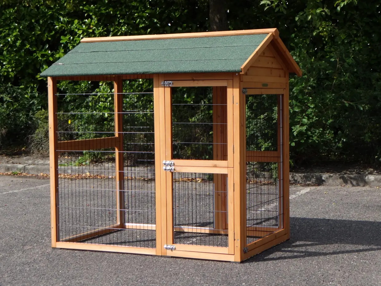 Zur Vermeidung von Rost- und Korrosionsbildung empfiehlt es sich, Schlösser und Beschläge regelmäßig mit Silikonspray oder Schlösserspray zu behandeln. Steht die Tierunterkunft nicht an einem geschützten Ort, empfehlen wir Ihnen, die Tierunterkunft zu verankern.