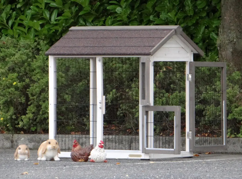 - Die Paneele des Geheges werden teilweise montiert geliefert.