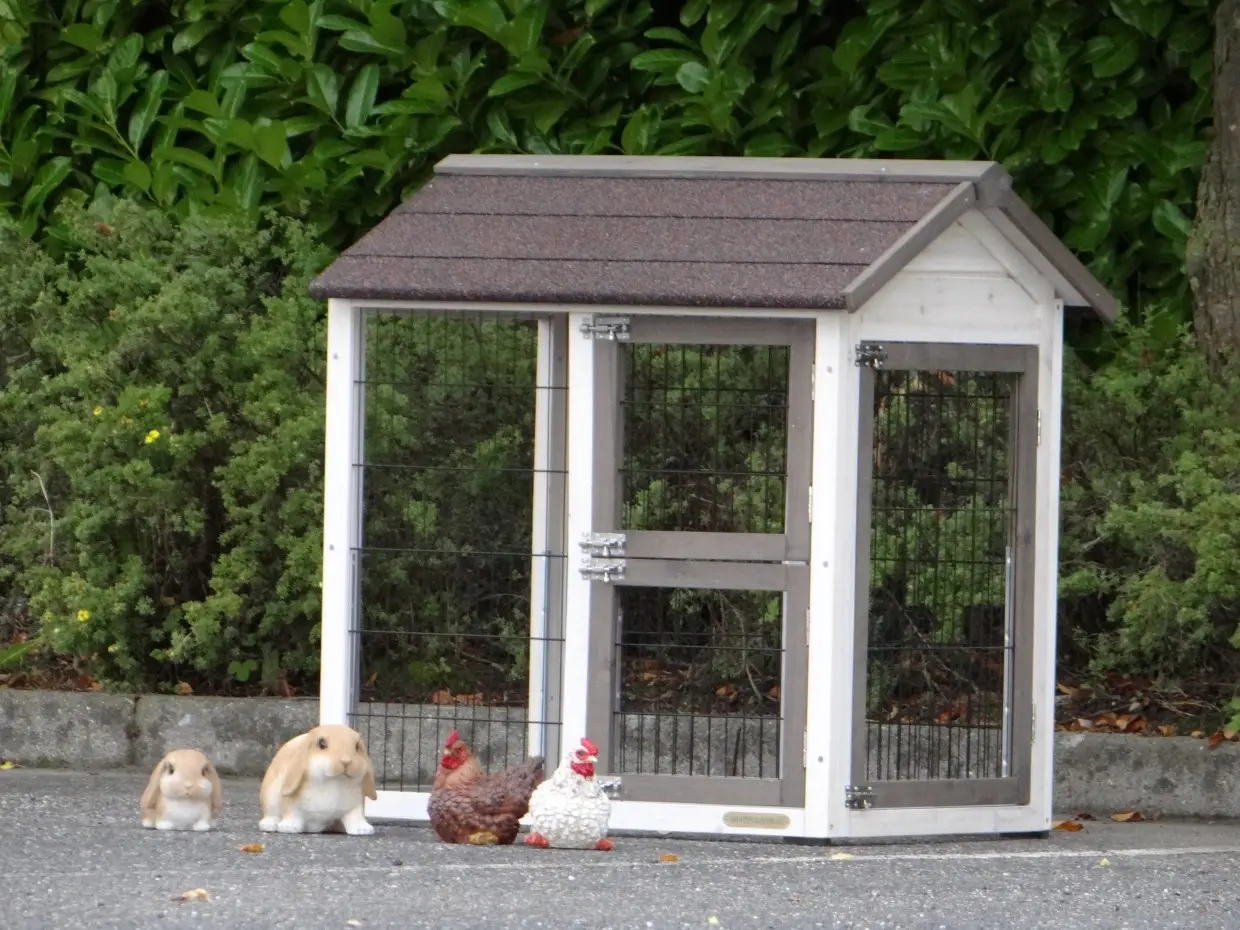 Zur Vermeidung von Rost- und Korrosionsbildung empfiehlt es sich, Schlösser und Beschläge regelmäßig mit Silikonspray oder Schlösserspray zu behandeln. Steht die Tierunterkunft nicht an einem geschützten Ort, empfehlen wir Ihnen, die Tierunterkunft zu verankern.