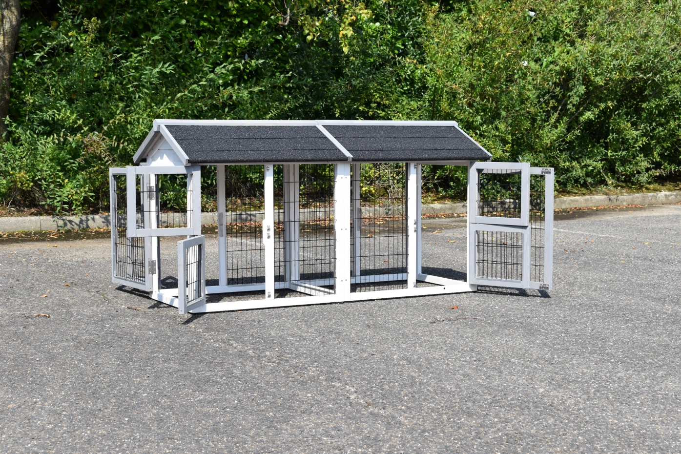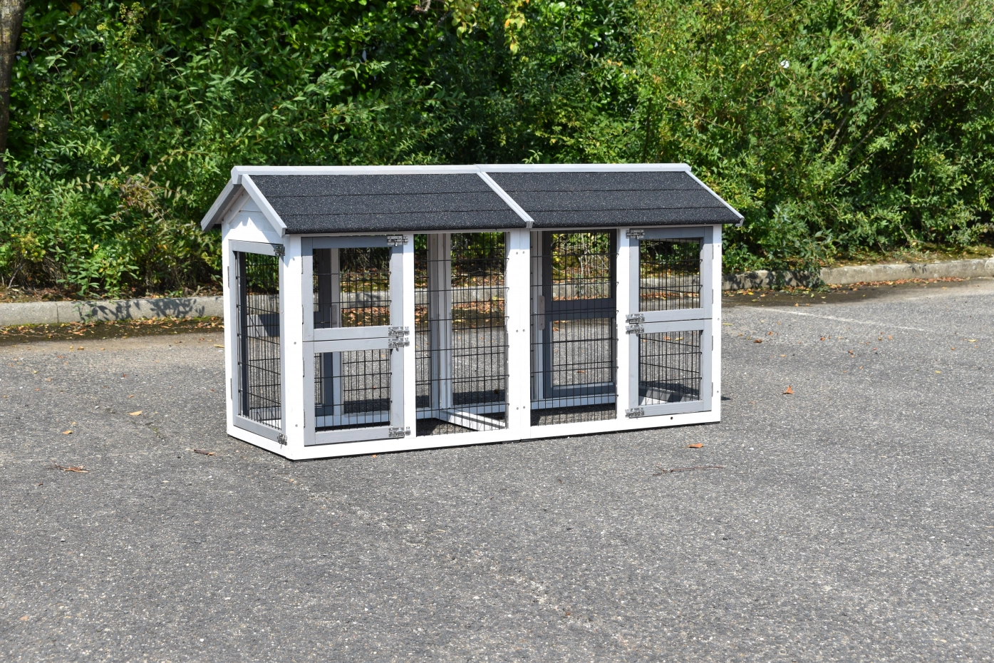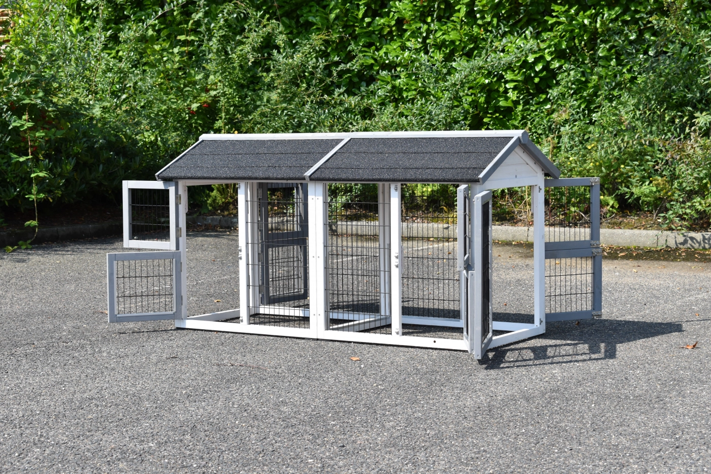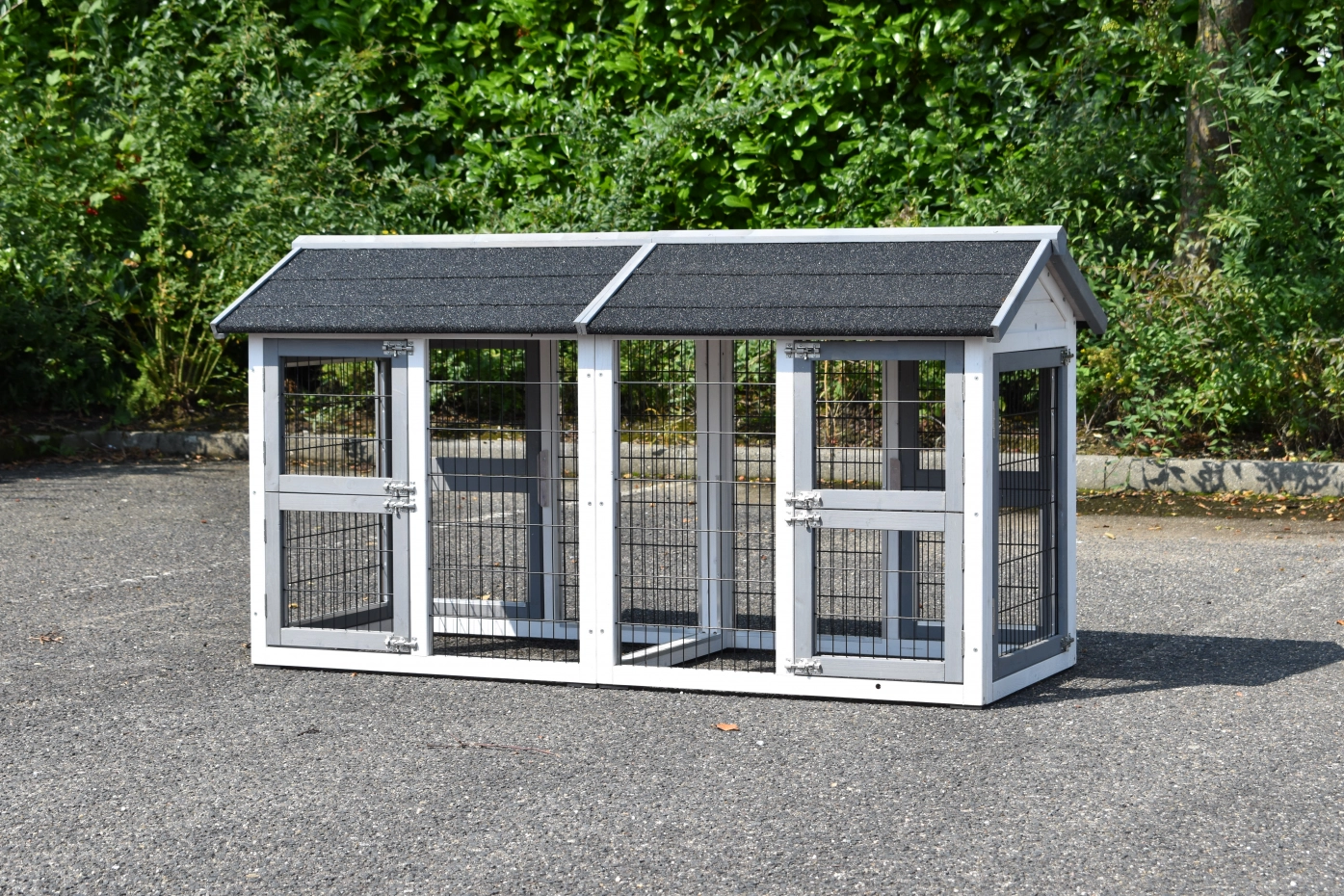 Der doppelte Anbau-auslauf Space Small ist als freistehender Auslauf konzipiert. Das bedeutet, dass Sie diesen Gehege an jedem beliebigen Ort aufstellen können. Unter dem Freilaufgehege befinden sich einige Füße, auf denen der Käfig ruht. Das Dach ist mit Dachpappe versehen, was sofort zusätzlichen Schutz bietet. Dieser Anbau-auslauf kann für verschiedene Tierarten wie Hühner, Kaninchen oder Katzen verwendet werden.