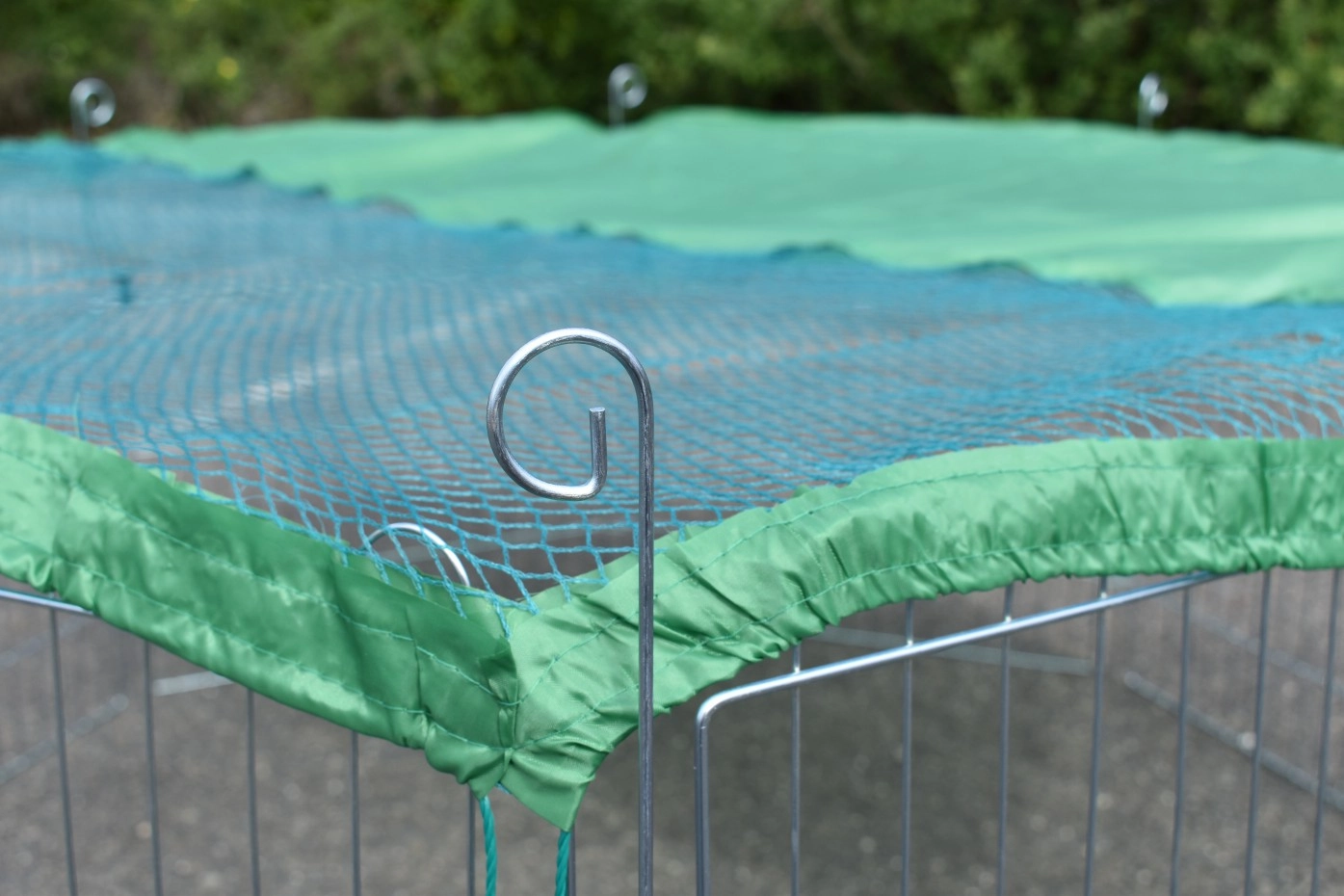 Bei die Verwendung von den Freilaufgehege ohne Abdecknetz, besteht die Möglichkeit das Ihre kaninchen herausspringen. Der Abdecknetz kann nur genützt werden wenn der Freilaufgehege in ein Achtecke ausgestellt wird.