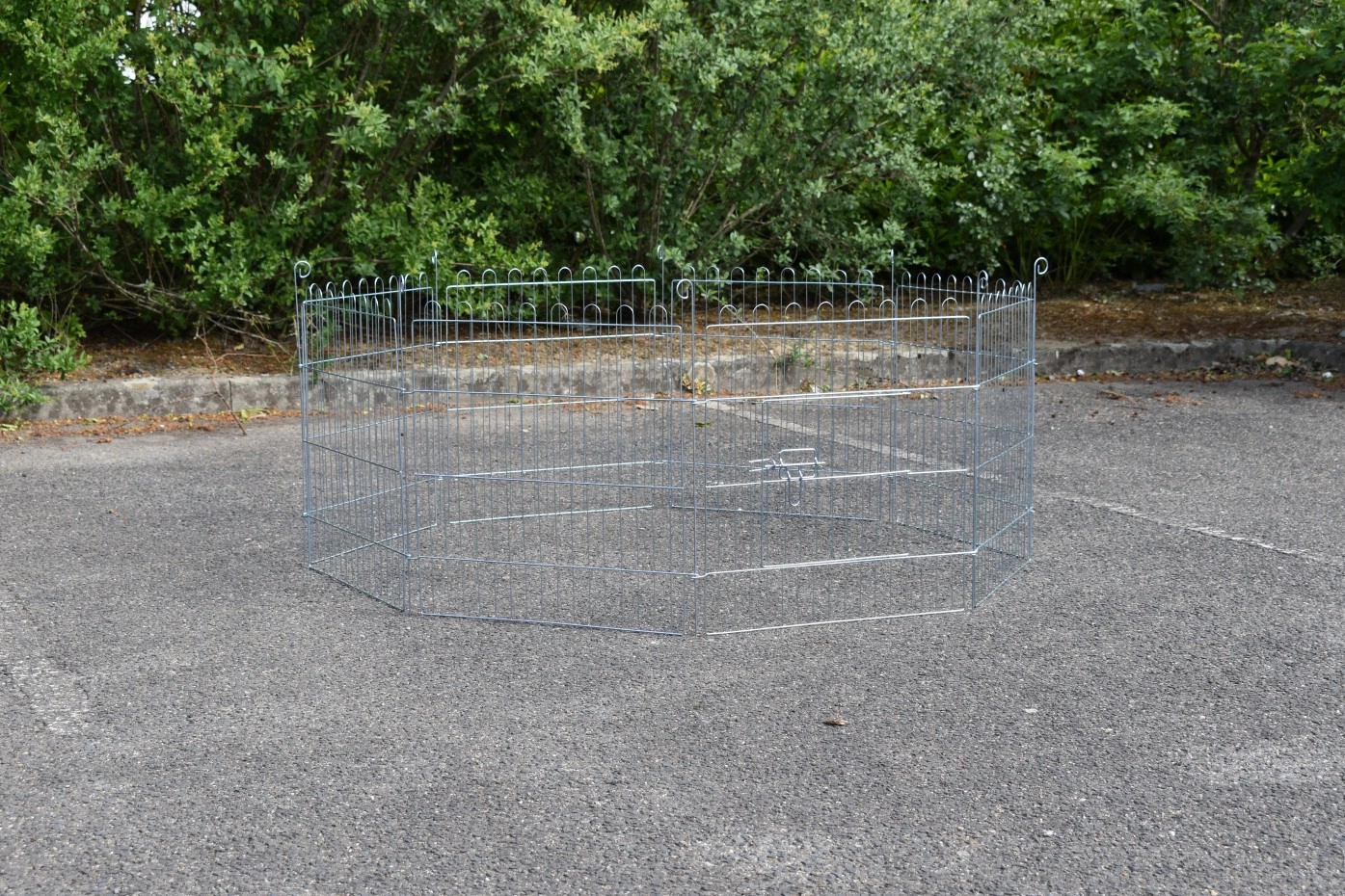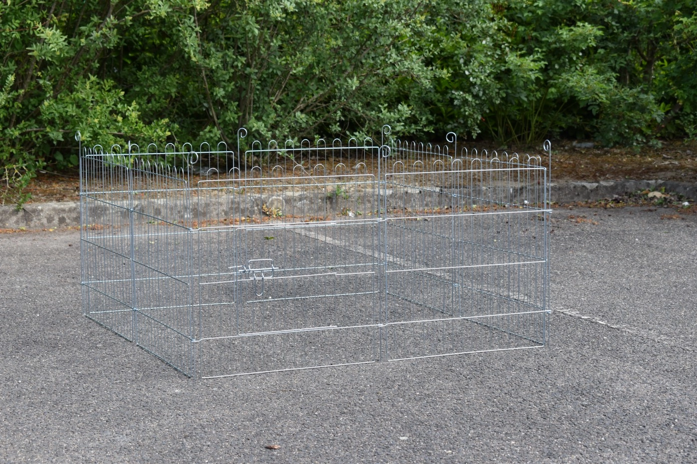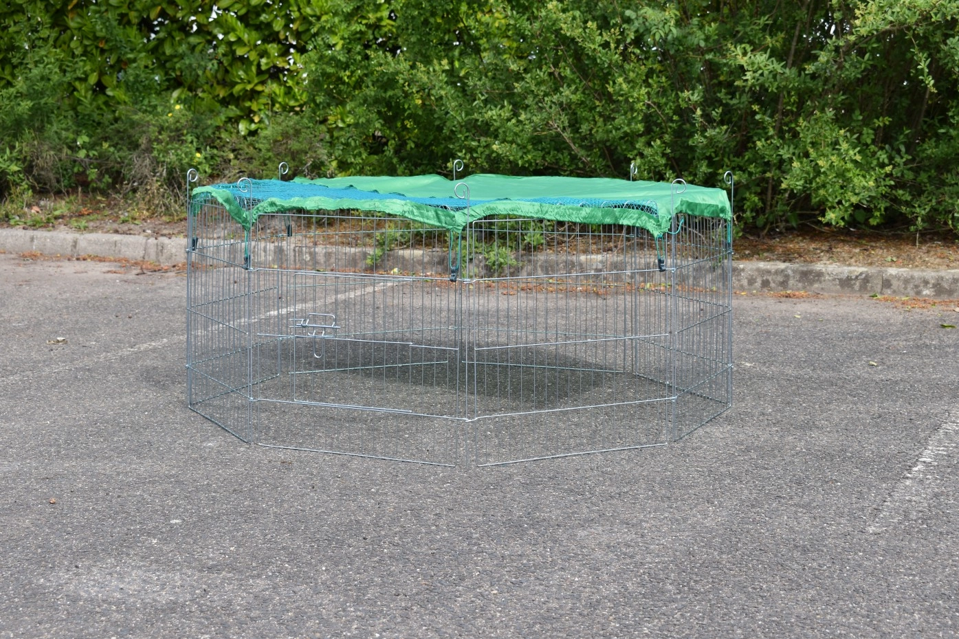 Freilaufgehege für Kleintiere 60cm. Diese einfach faltbare Frailaufgehege kann in jeder gewünschten Form ausgestellt werden. Dieser Freilaufgehege besteht aus 8 Paneele von 60x60cm, 1 Paneele hat ein kleines Tür. Der Freilaufgehege ist ausgestattet mit ein Abdecknetz in Kombination mit einem Sonnenschutz, so dass der Auslauf auch geeignet is für Meersweinchen. Mit die mitgelieferte Befestigungsstiften kann der Freilaufgehege auch in der Grund befestigt werden.