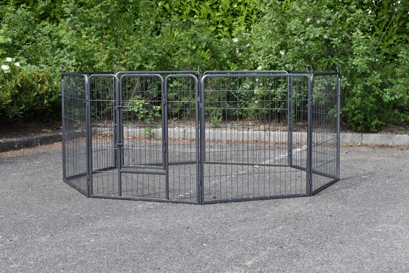 Freilaufgehege für Kleintiere Octa hat ein Höhe von 80cm. Dieser Gehege ist herstellt aus pulverbeschichtet Stahl. Der Gehege besteht aus 8 Paneele von etwa 79x80cm. Der Auslauf kann für Kaninchen, Welpen und ändere Tiere genützt werden.