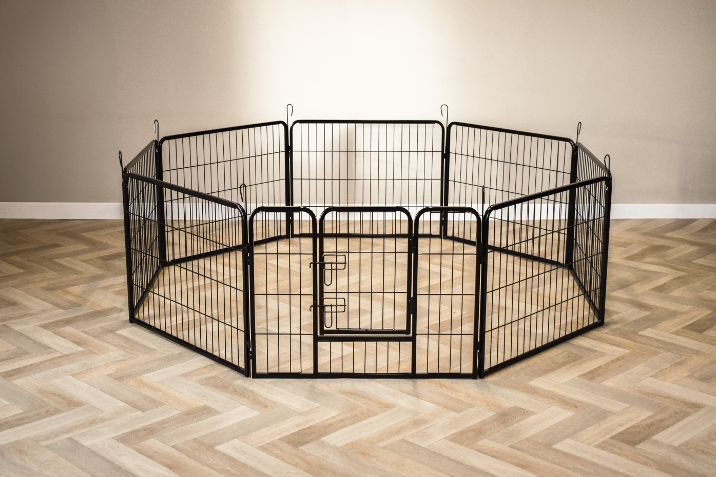 Kaninchenauslauf Octa ist herstellt aus pulverbeschichteter Stahl. Die Höhe von der Auslauf ist 60cm. Der Auslauf besteht aus 8 Paneele von etwa 79x60cm.