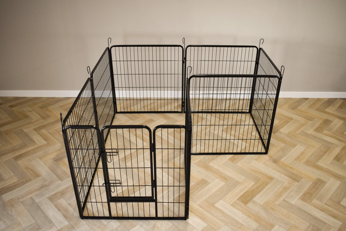 Freilaufgehege für Kleintiere Octa hat ein Höhe von 80cm. Dieser Gehege ist herstellt aus pulverbeschichtet Stahl. Der Gehege besteht aus 8 Paneele von etwa 79x80cm. Der Auslauf kann für Kaninchen, Welpen und ändere Tiere genützt werden.