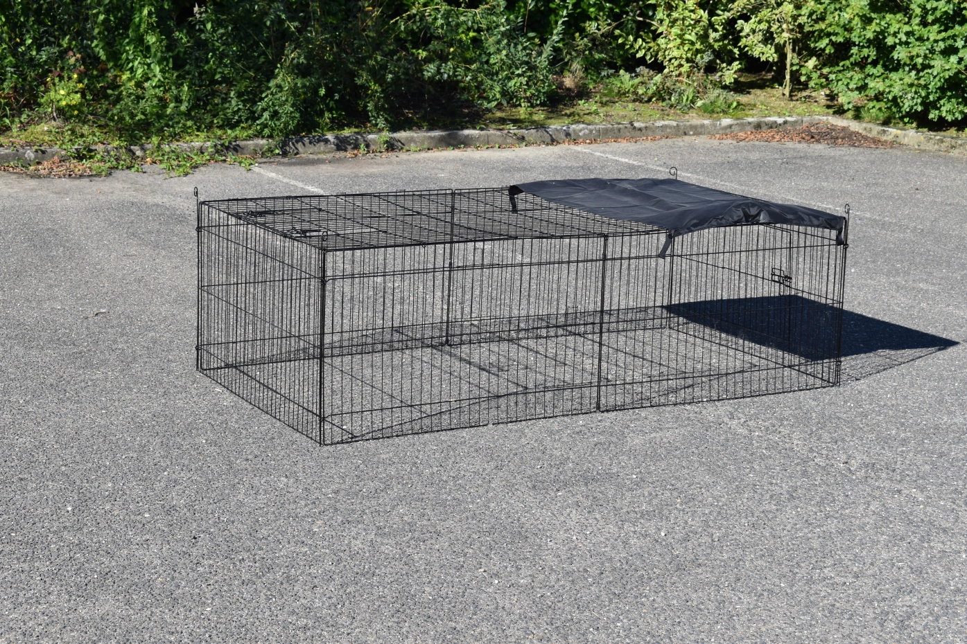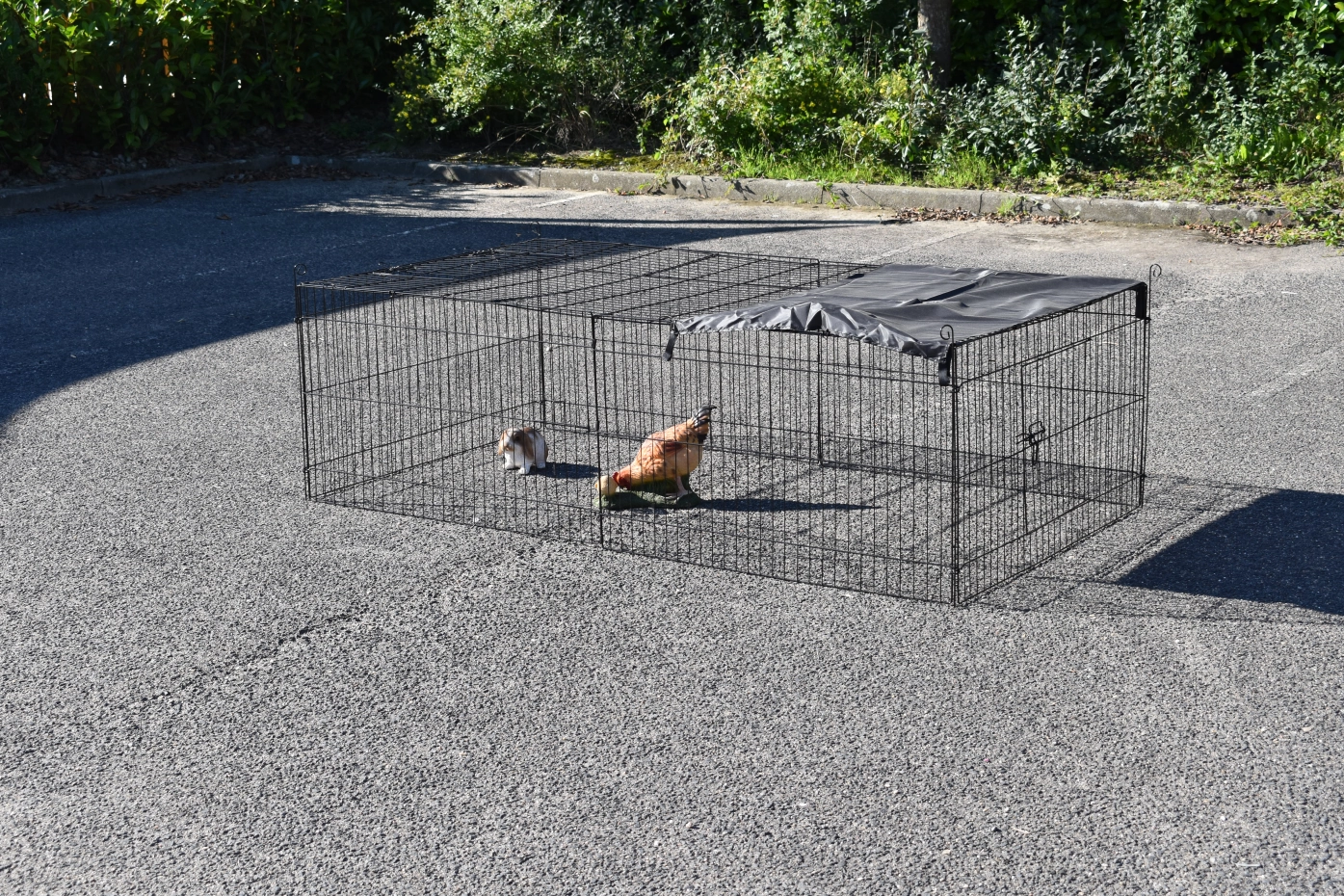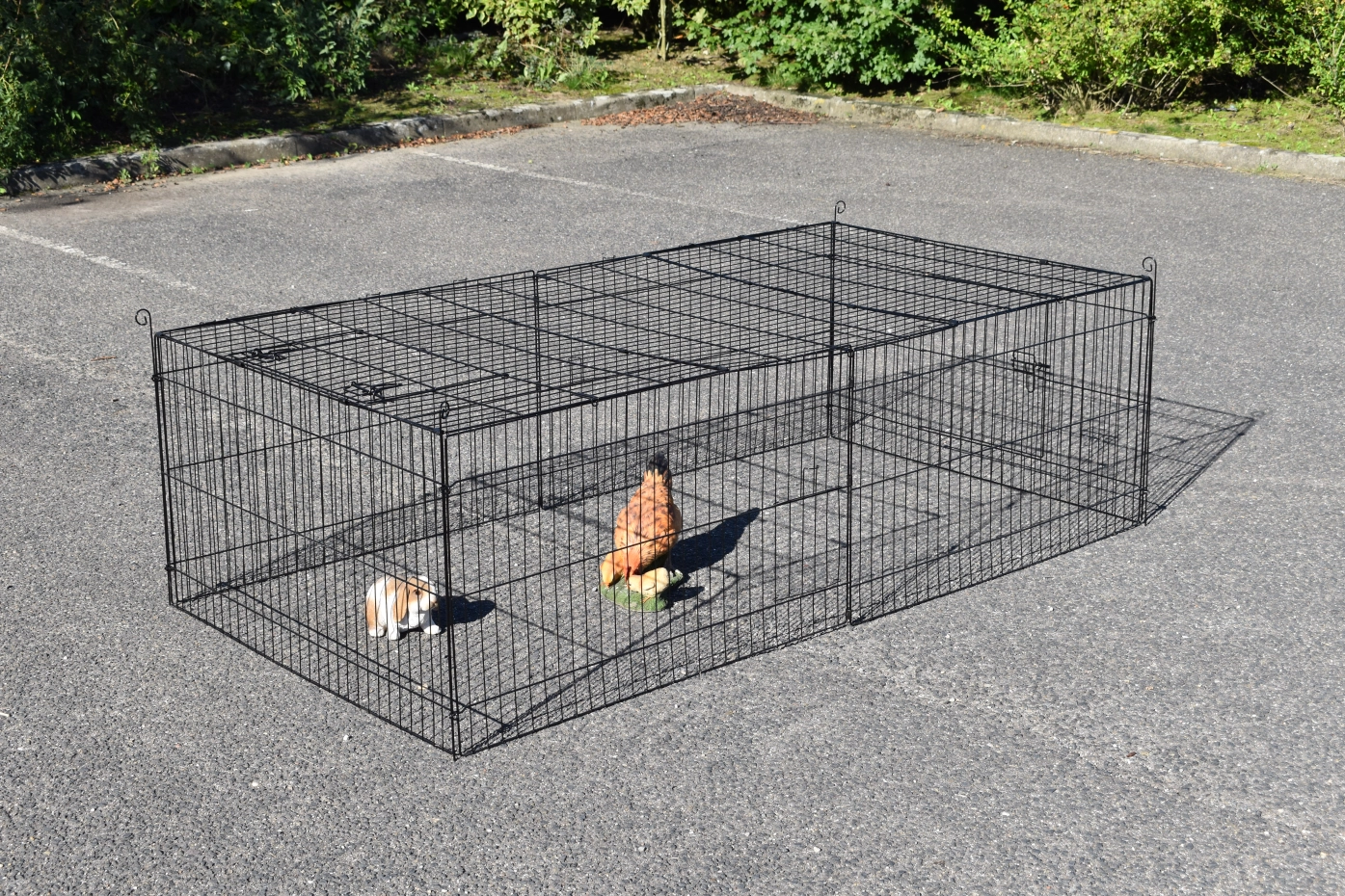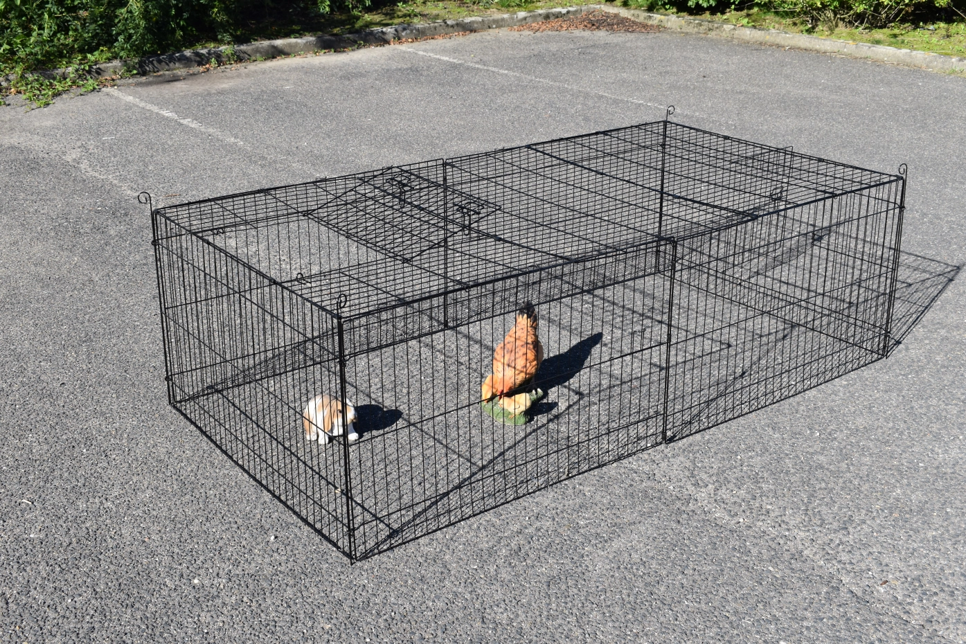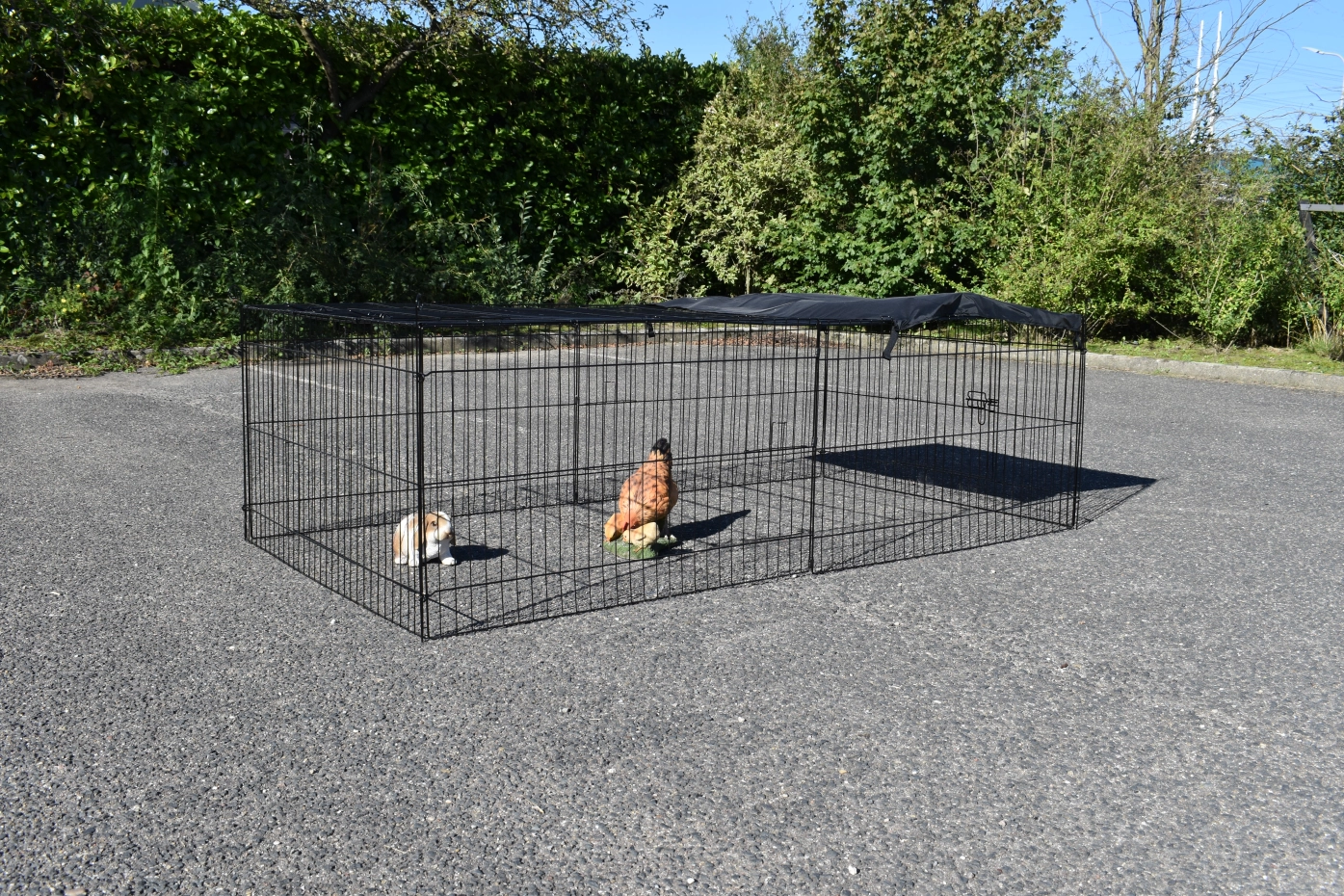 Tierauslauf Jacky hat ein Sonnenschutz, so dass Ihre Tiere mehr können schützen. Diese stabile Auslauf ist herstellt aus schwarzen Gitter. Tierauslauf Jacky kann einzeln verwendet werden, aber kann auch gut kombiniert werden mit ein Stall. Dieser Auslauf hat 2 Öffnungen im Gitter, 1 große Tür und 1 Schiebesluke. Auch das Dachpanel ist ausgestattet mit ein Tür. Dieser Auslauf ist nicht nur schön, aber auch sehr praktisch.