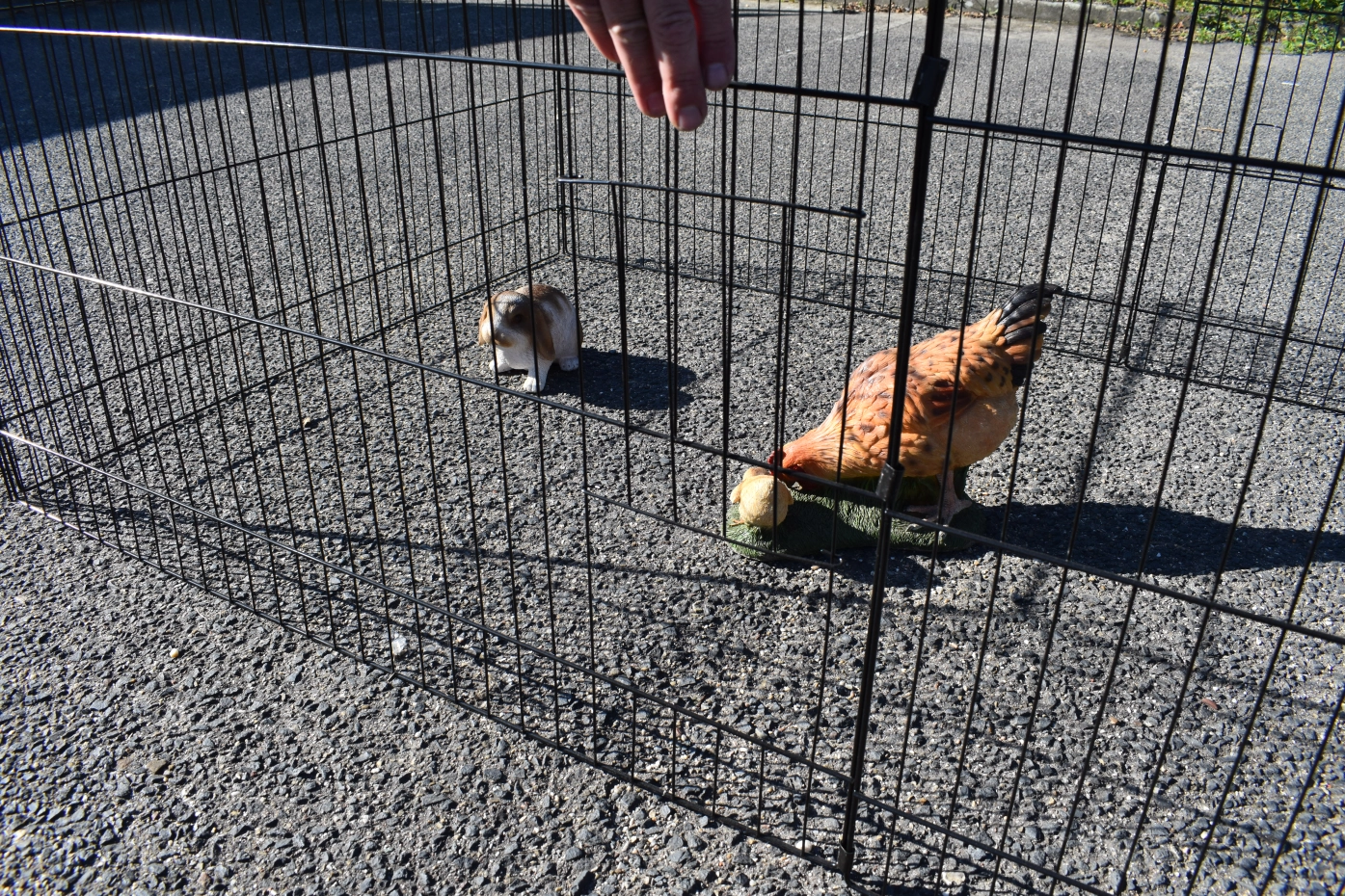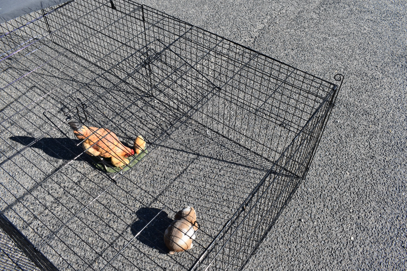 - Der Auslauf hat ein Drahtdach