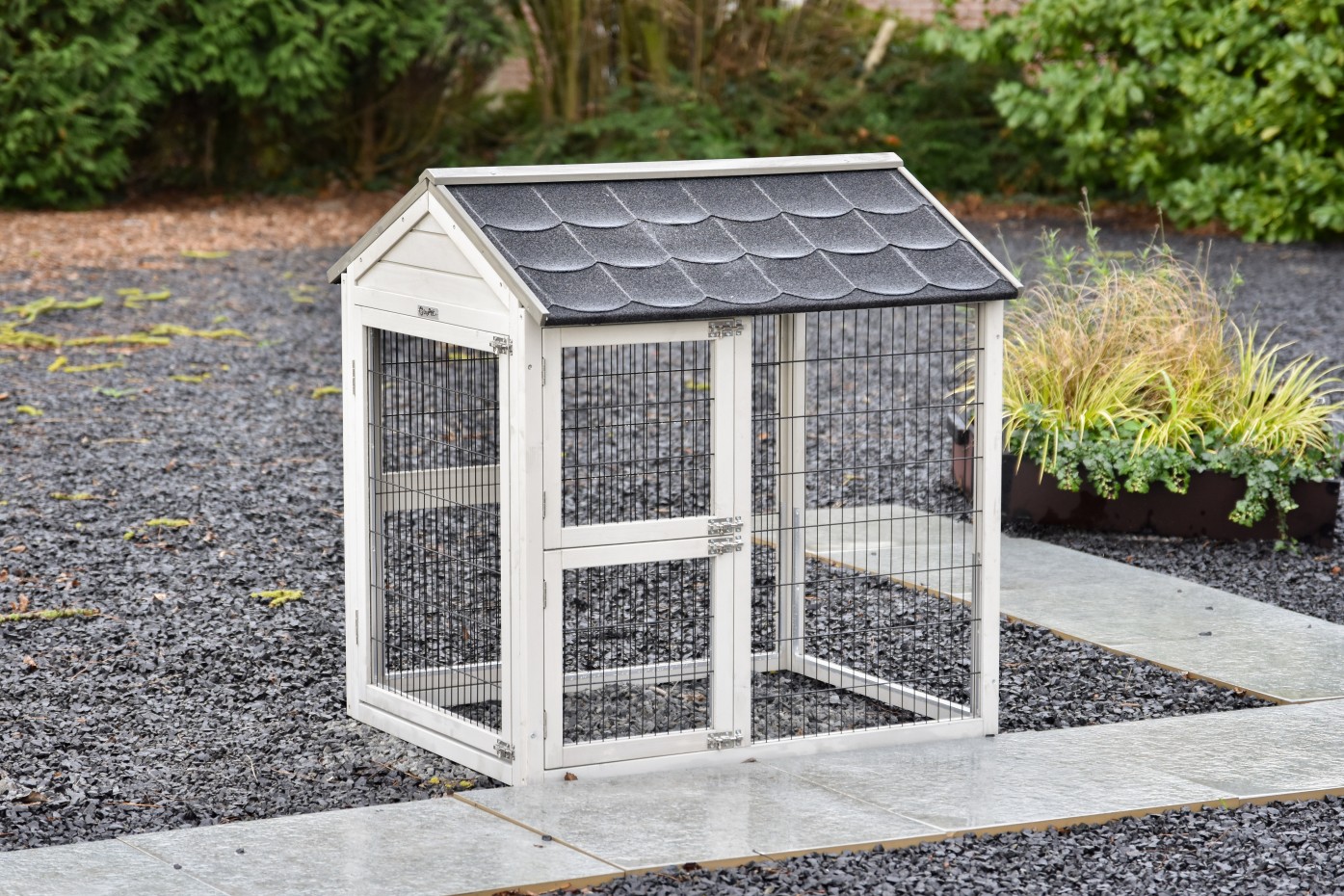 Zur Vermeidung von Rost- und Korrosionsbildung empfiehlt es sich, Schlösser und Beschläge regelmäßig mit Silikonspray oder Schlösserspray zu behandeln. Steht die Tierunterkunft nicht an einem geschützten Ort, empfehlen wir Ihnen, die Tierunterkunft zu verankern.