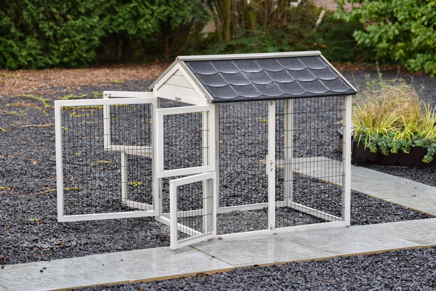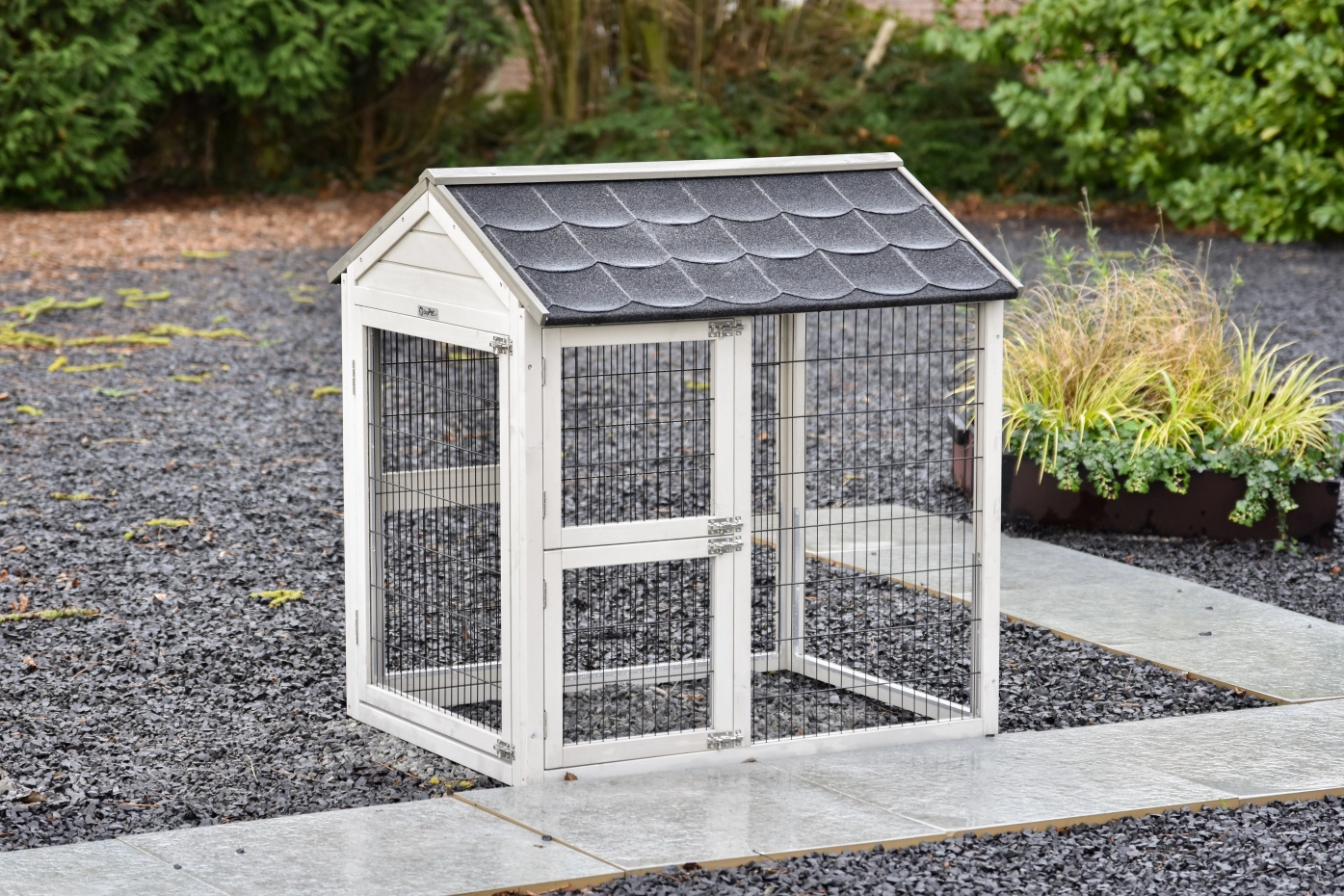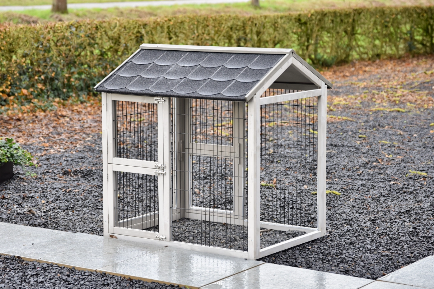 • Das Dach dieses Außengeheges ist mit Dachpappe versehen
