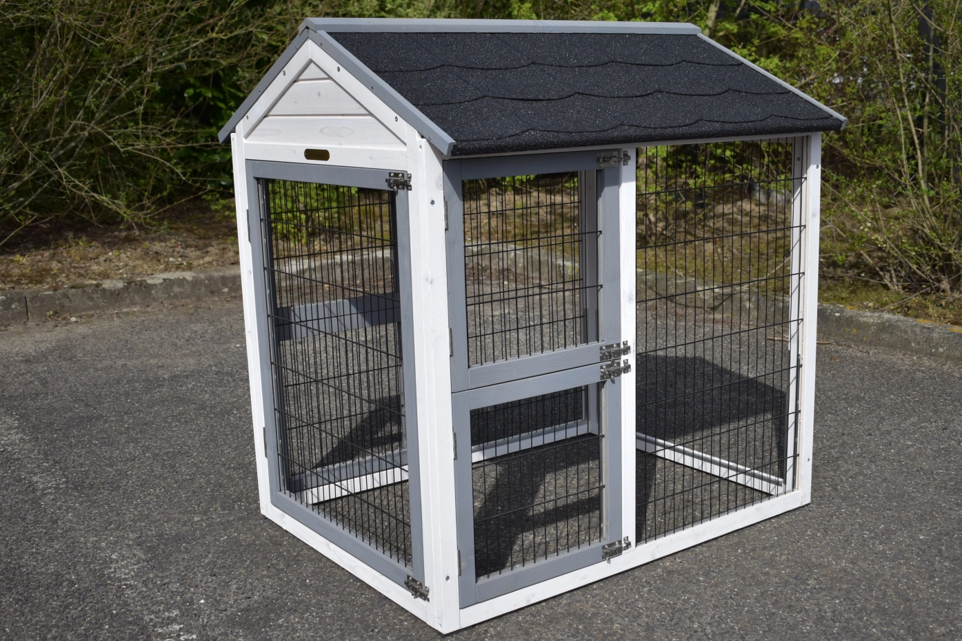 Zur Vermeidung von Rost- und Korrosionsbildung empfiehlt es sich, Schlösser und Beschläge regelmäßig mit Silikonspray oder Schlösserspray zu behandeln. Steht die Tierunterkunft nicht an einem geschützten Ort, empfehlen wir Ihnen, die Tierunterkunft zu verankern.