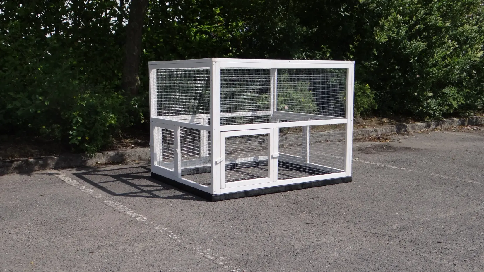 Zur Vermeidung von Rost- und Korrosionsbildung empfiehlt es sich, Schlösser und Beschläge regelmäßig mit Silikonspray oder Schlösserspray zu behandeln. Steht die Tierunterkunft nicht an einem geschützten Ort, empfehlen wir Ihnen, die Tierunterkunft zu verankern.