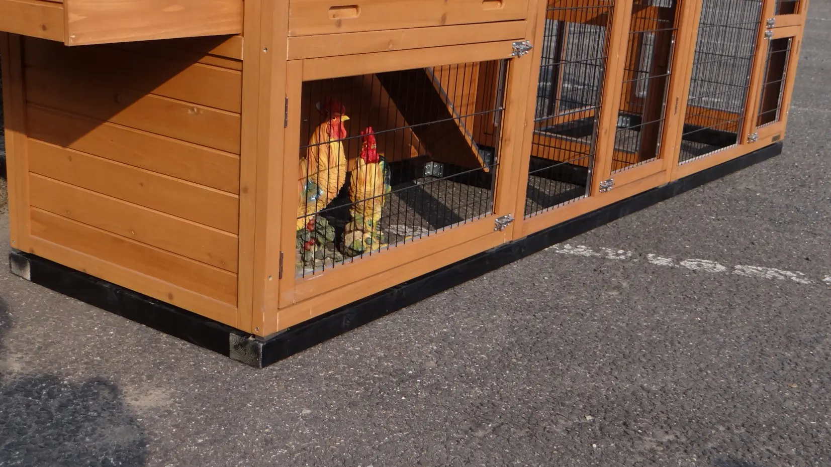 Ein Fundament gibt einen sehr guten Schutz gegen Feuchtigkeit von unten, und gibt Stabilität zum Stall. Befestigung am Stall macht eine starke Einheit. Material wird dafür mitgeliefert. Das gibt mehr und langer Spass von Ihrem Animalhouse. Aus transparentem imprägnierten Holz.