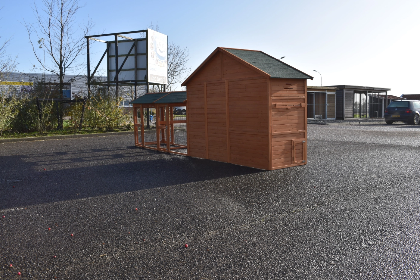 - Der Stall wurde aus schönem Kiefernholz hergestellt