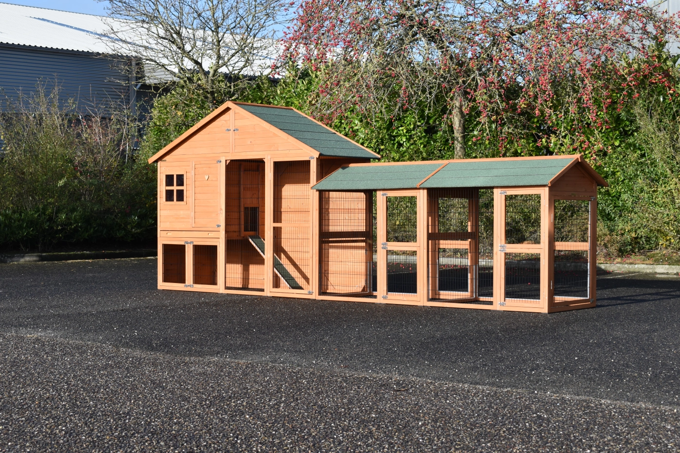 Kaninchenstall Holiday Large ist ein praktisch und schöne Staal von Topqualität. Der Stall Holiday Large ist ein große Kaninchenstall mit ein Schlafraum, 2 Ausläufe Space Large und Nageschutzstreifen. Der große Tür an der rechter Vorderseite hat die Abmessungen 55x131cm. Der Tür on der Vorderseite vom Schlafraum ist 41x69cm.