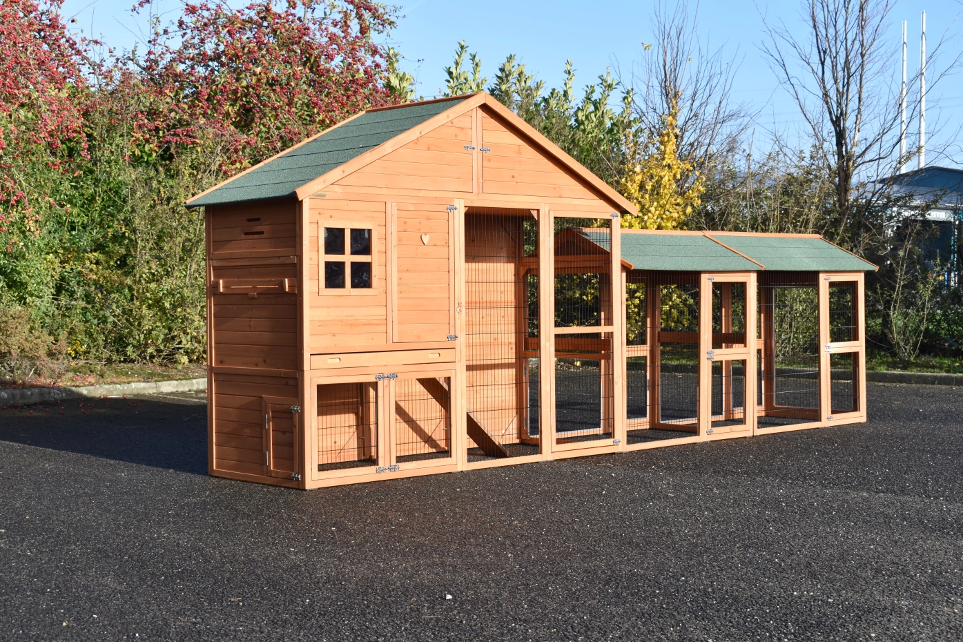 - Die Türen dieses Kaninchenstalls sind mit doppelten Schieberiegeln ausgestattet