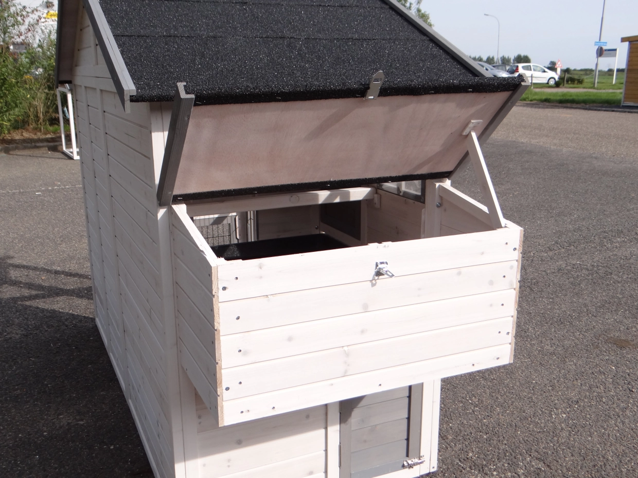 - Das Dach dieses Kaninchenstalls ist mit Dachpappe versehen.