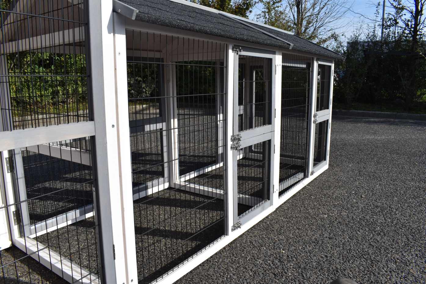 - Die Türen dieses Kaninchenstalls sind mit doppelten Schieberiegeln ausgestattet