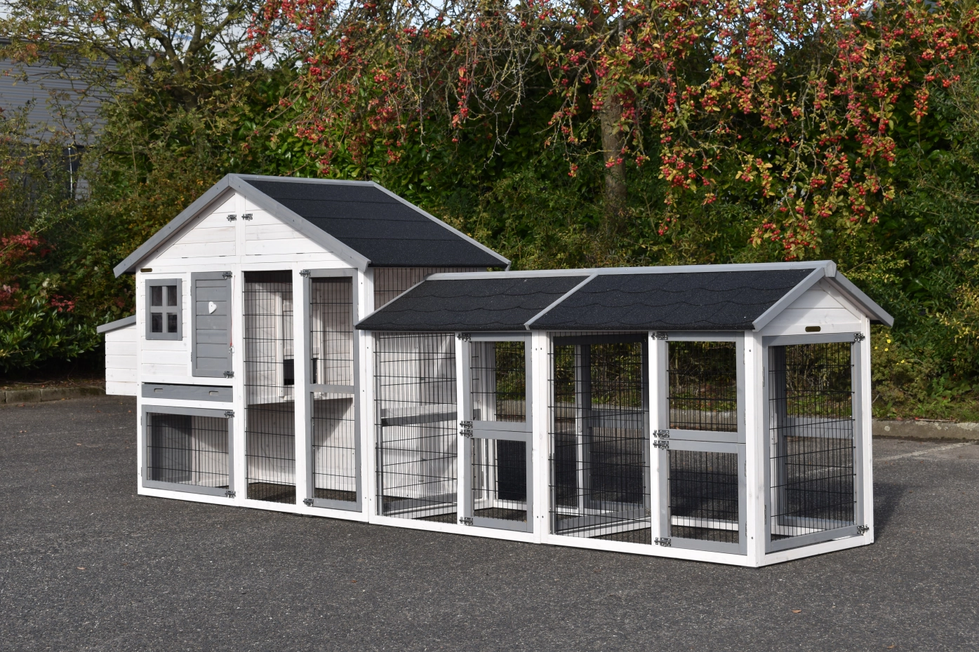 Der Kaninchenstall Holiday Medium mit 2 zusätzlichen Auslaüfe ist ein äußerst praktischer und schöner Stall mit Schlafraum und großem Auslauf. Dieses wundervolle Kaninchenhaus ist auch mit einem Nestkasten auf der linken Seite ausgestattet. Das Kaninchenhaus Holiday Medium eignet sich zur Unterbringung von etwa 2 bis 4 Kaninchen.