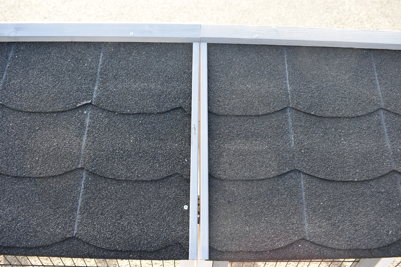 - Das Dach dieses Außengeheges ist mit Dachpappe versehen