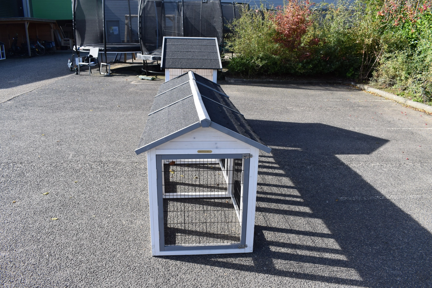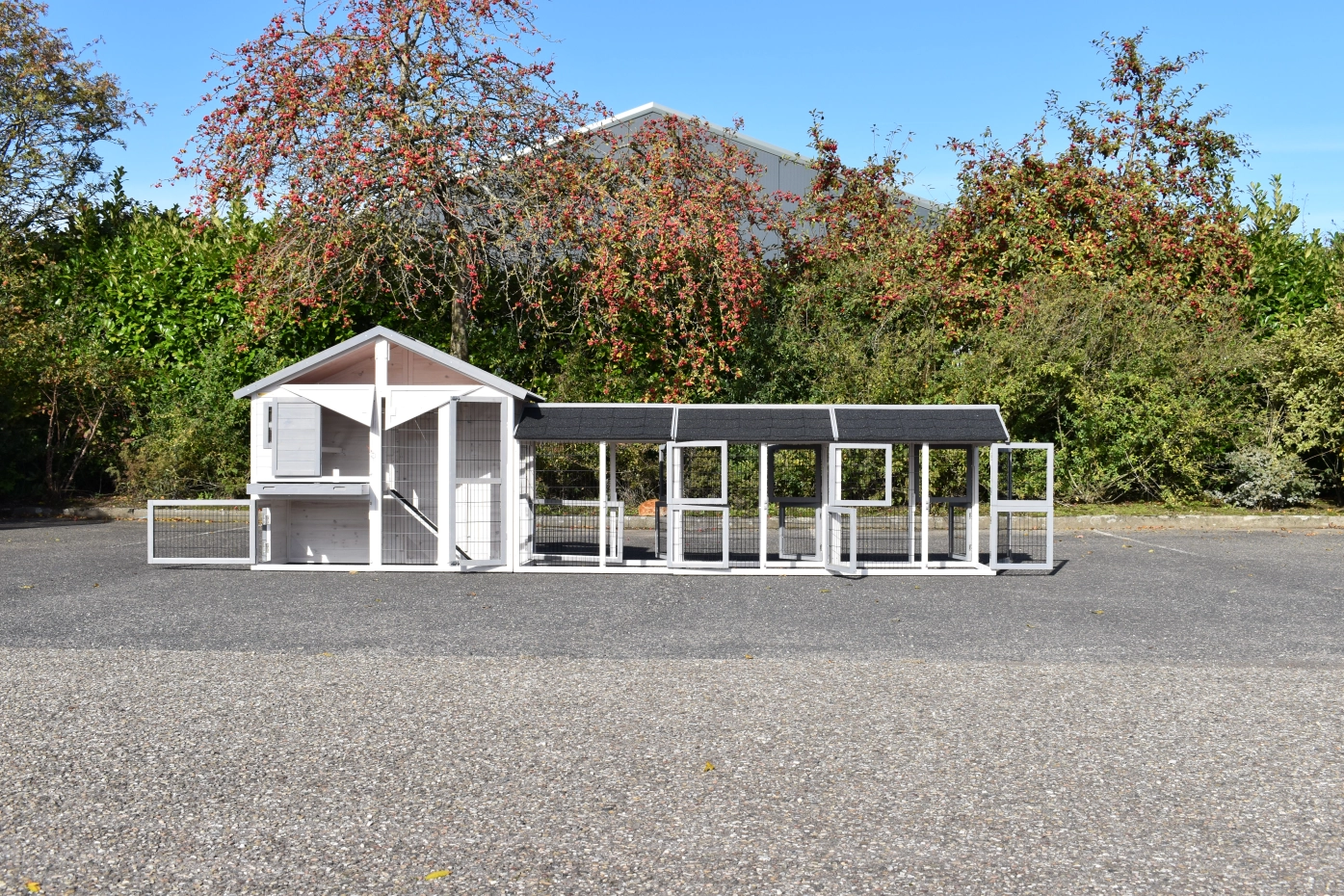 Der Kaninchenstall Holiday Medium mit 3 zusätzlichen Gehegen bietet Ihren Kaninchen viel Platz. Er verfügt über ein abschließbares Nachthaus und einen praktischen Dachboden.