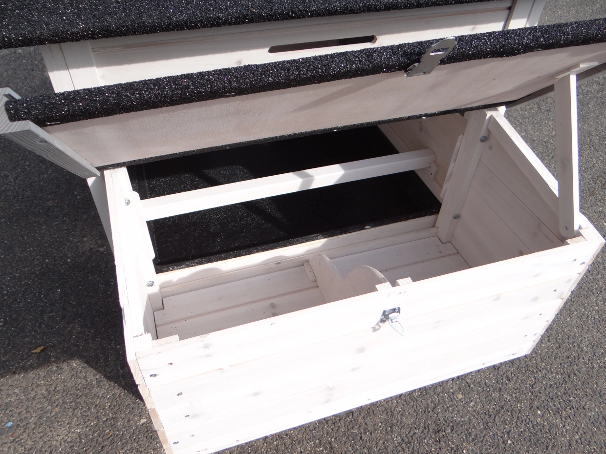 - Das Dach dieses Kaninchenstalls ist mit Dachpappe versehen.