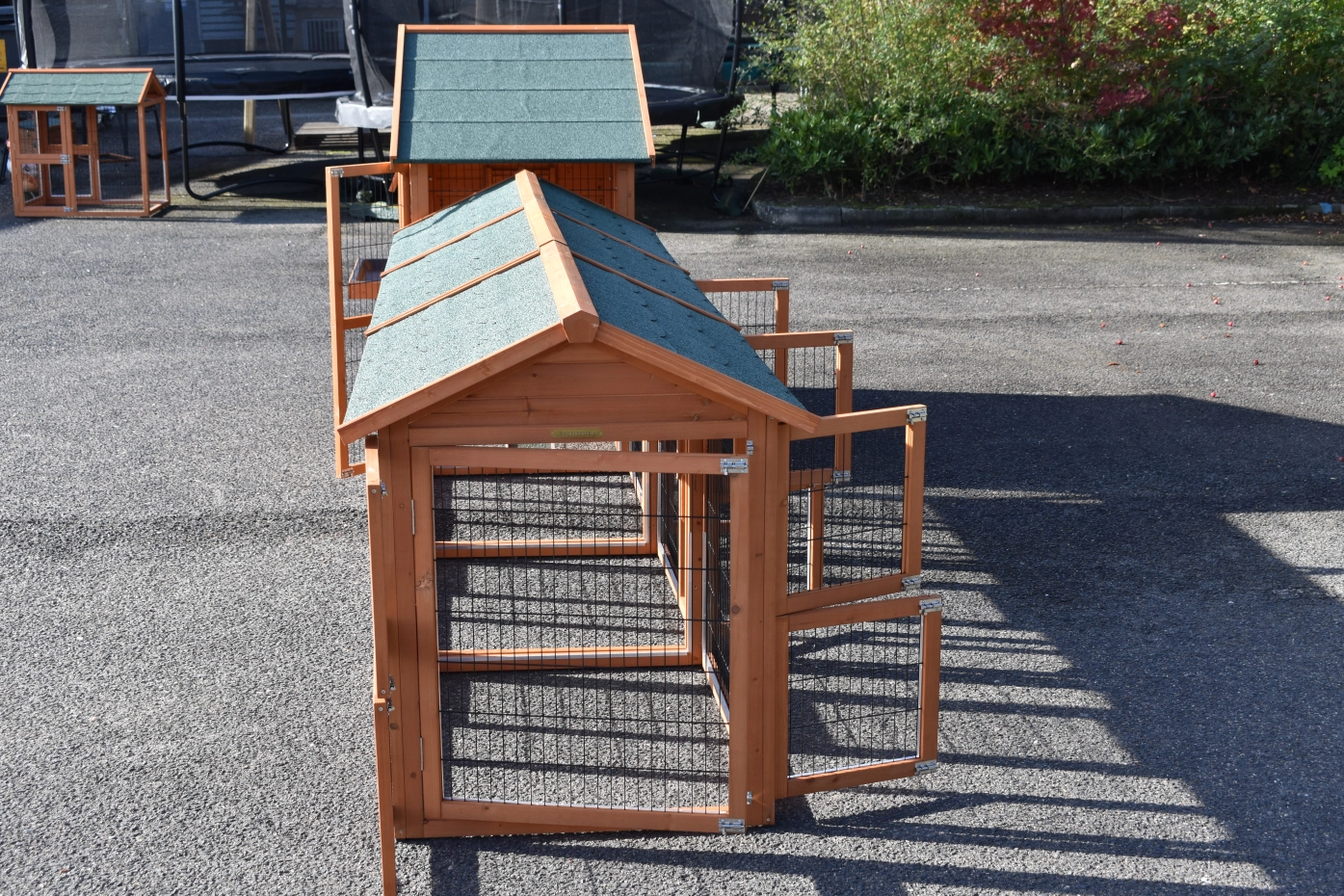 - Die Türen dieses Kaninchenstalls sind mit doppelten Schieberiegeln ausgestattet