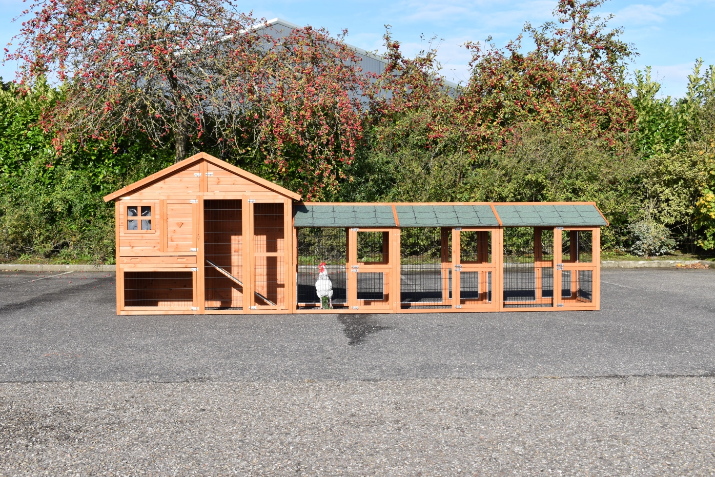 Der Hühnerstall Holiday Medium bietet ein schöne Platz für Ihre Hühner. Diese Stall hat große Türen und steht diese Stall auf gummi Füßen. Er hat auch ein praktische Schublade um der Schlafraum einfach zu reinigen. Unter das Dach befindet sich ein praktisch Stauraum. Das Dach ist ausgestattet mit Dachpappe. Zwischen der Etagen befindet sich ein Leiter. Der Stall ist geeignet für 3 bis 5 Hühner.