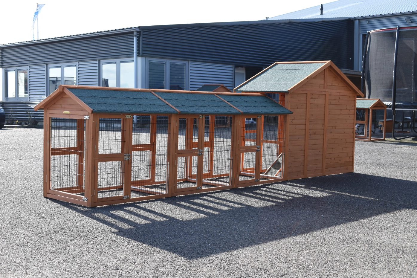 - Der Stall wurde aus schönem Kiefernholz hergestellt