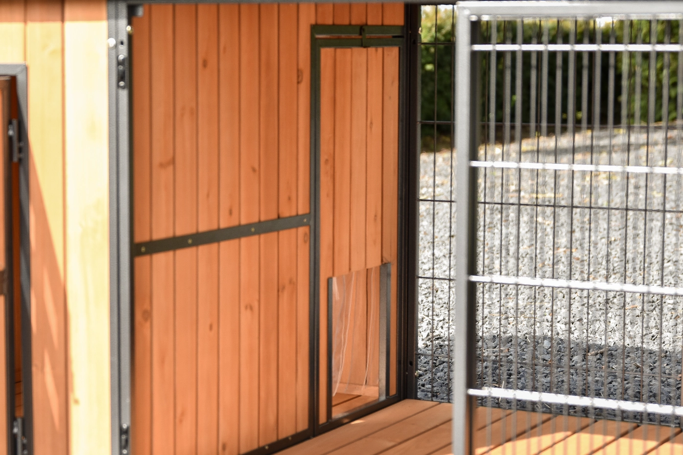 - Tierstall aus Kiefernholz mit stabilem, beschichtetem Stahlrahmen und schwarzem Drahtgitter