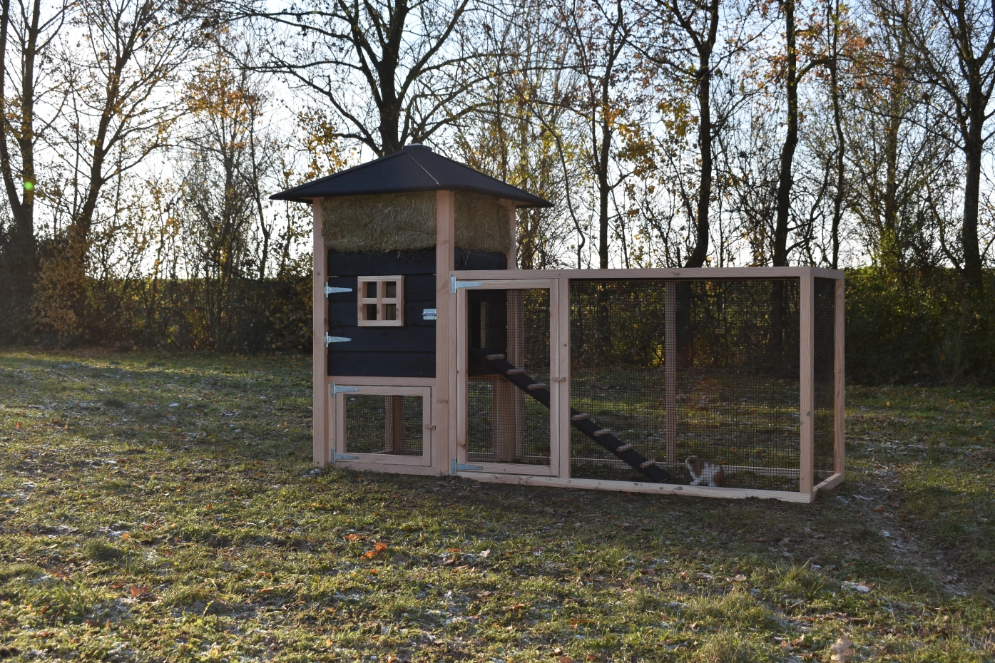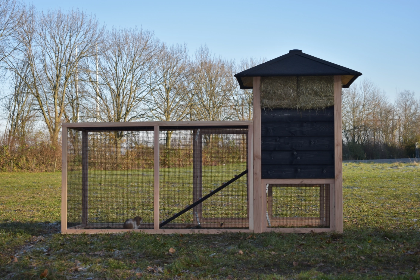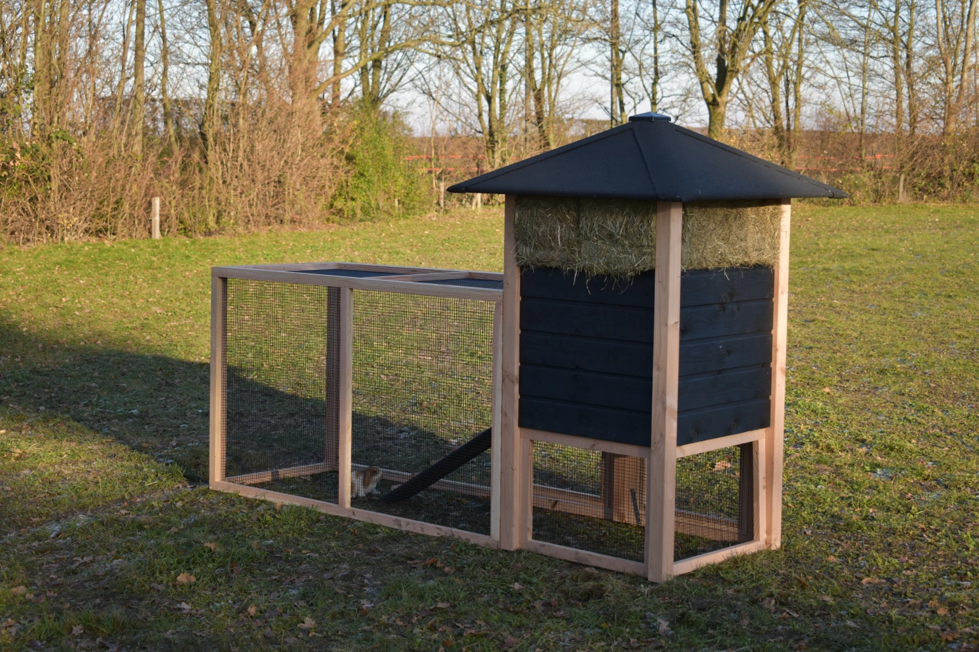 Auslauf mit Gitterdach · Douglasien/schwarz