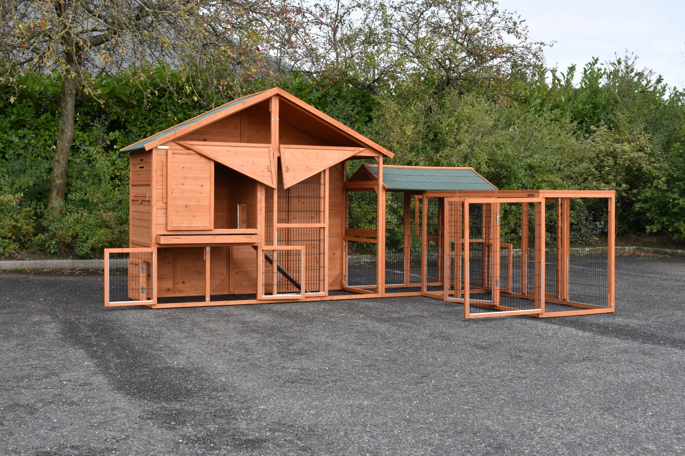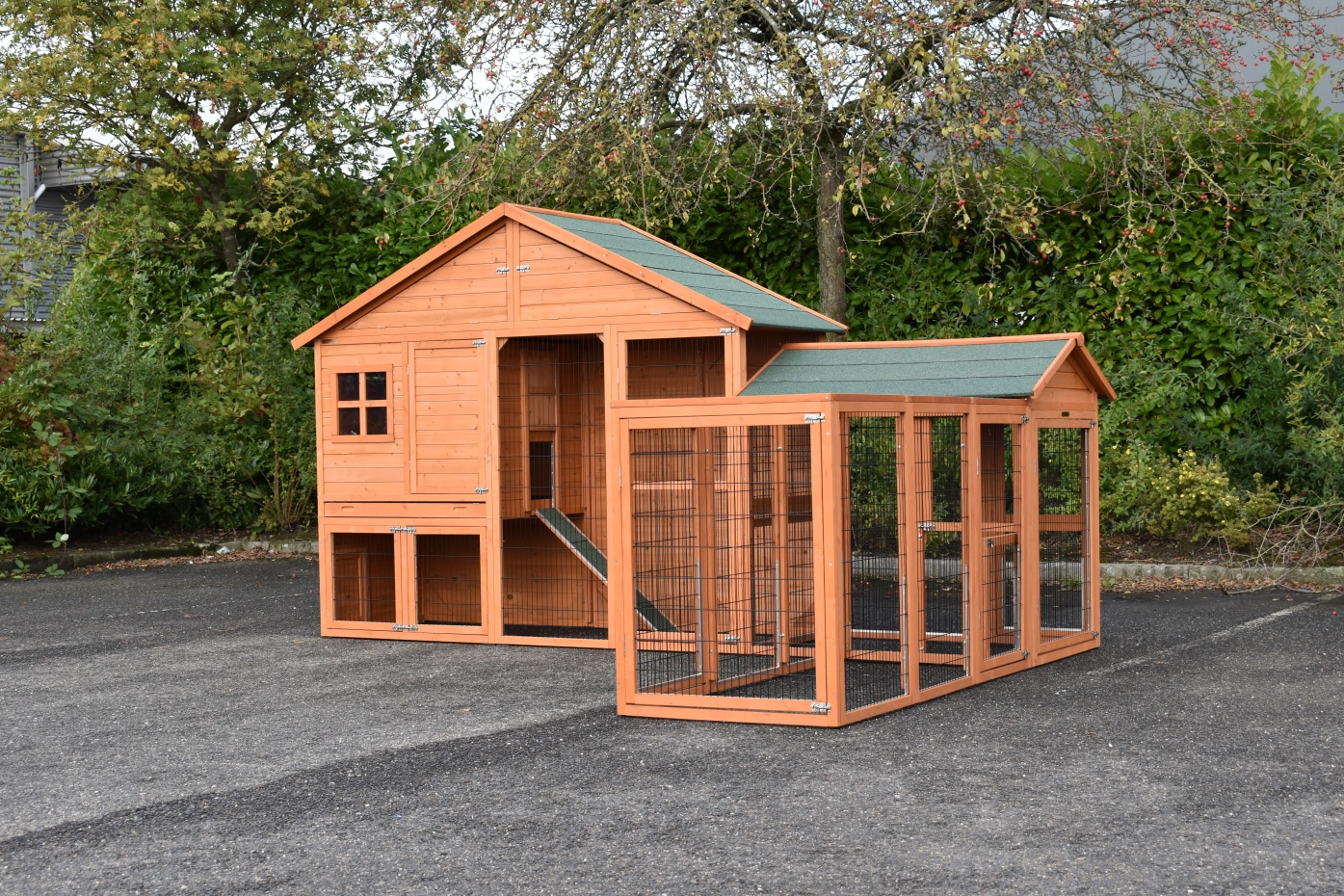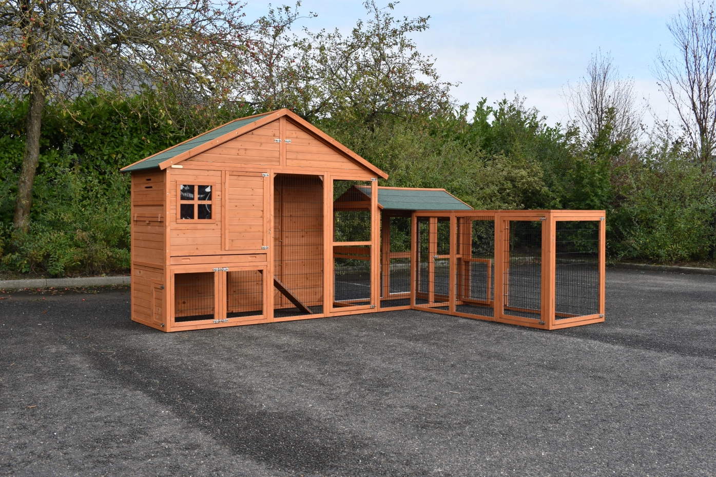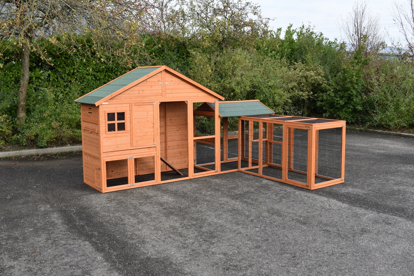 Der Kaninchenstall Holiday Large mit den Ausläufe Space Large und Functional ist ein sehr praktischer, geräumiger und schöner Kaninchenstall von ausgezeichneter Qualität. Durch die praktische Eckanordnung kann der geräumige Kaninchenstall auf begrenztem Raum platziert werden. Der Holiday Large Kaninchenstall eignet sich zur Unterbringung von etwa 3 bis 5 Kaninchen. Der Stall kann in einer Ecke aufgestellt werden.