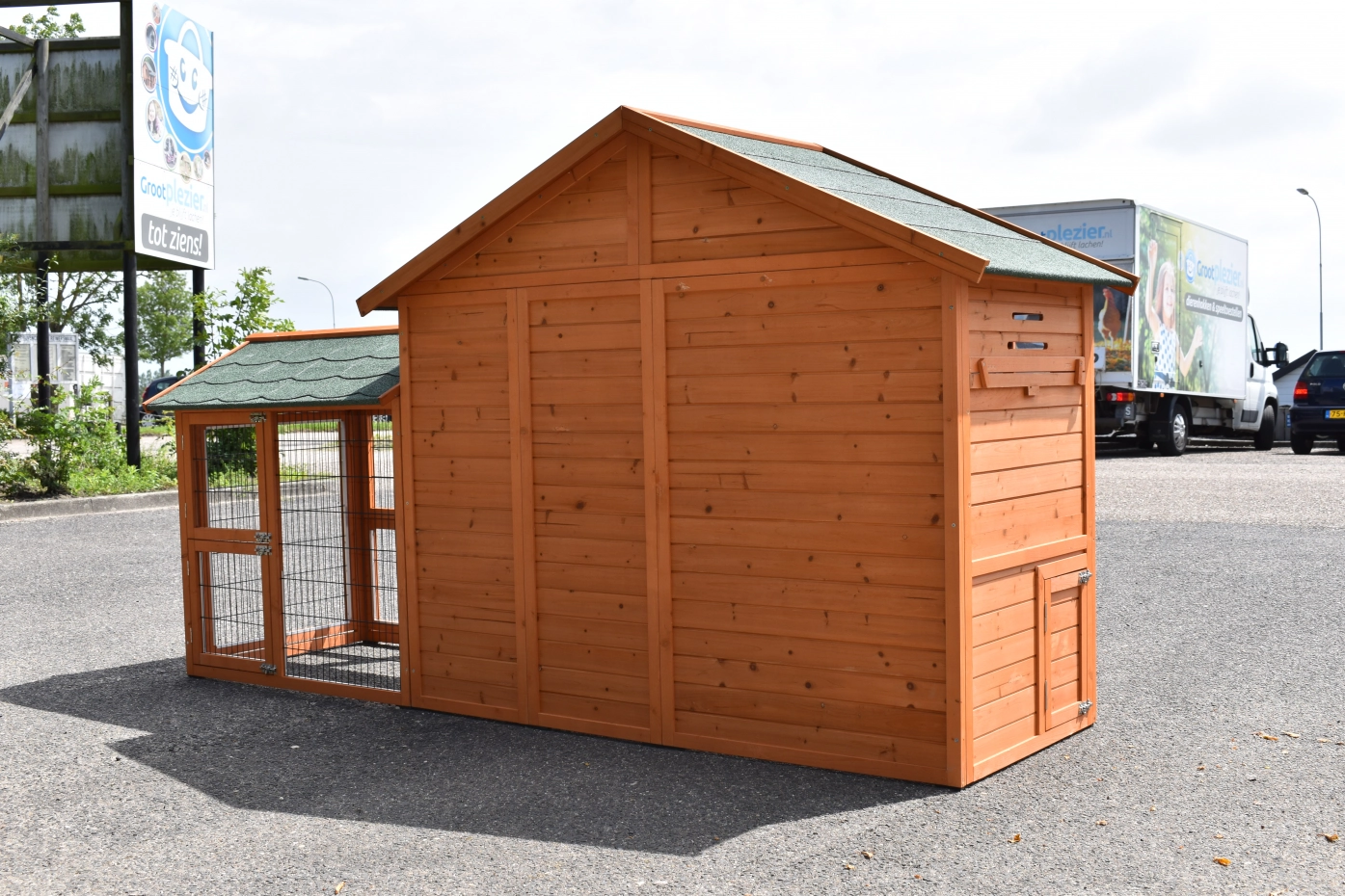 - Der Stall wurde aus schönem Kiefernholz hergestellt