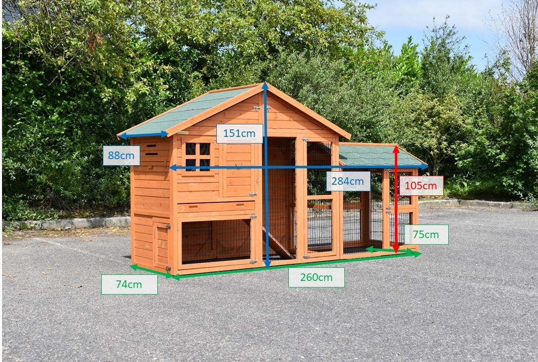 Kaninchenstall Holiday Medium ist erweitert mit ein Auslauf Space Medium. Tierheim Holiday Medium ist ein schöne, praktische Stall mit Schlafraum und Auslauf. Kaninchenstall Holiday Medium ist geeignet für 2 bis 4 Kaninchen. Abmessungen Kaninchenstall mit Auslauf sind 284x88x151cm.