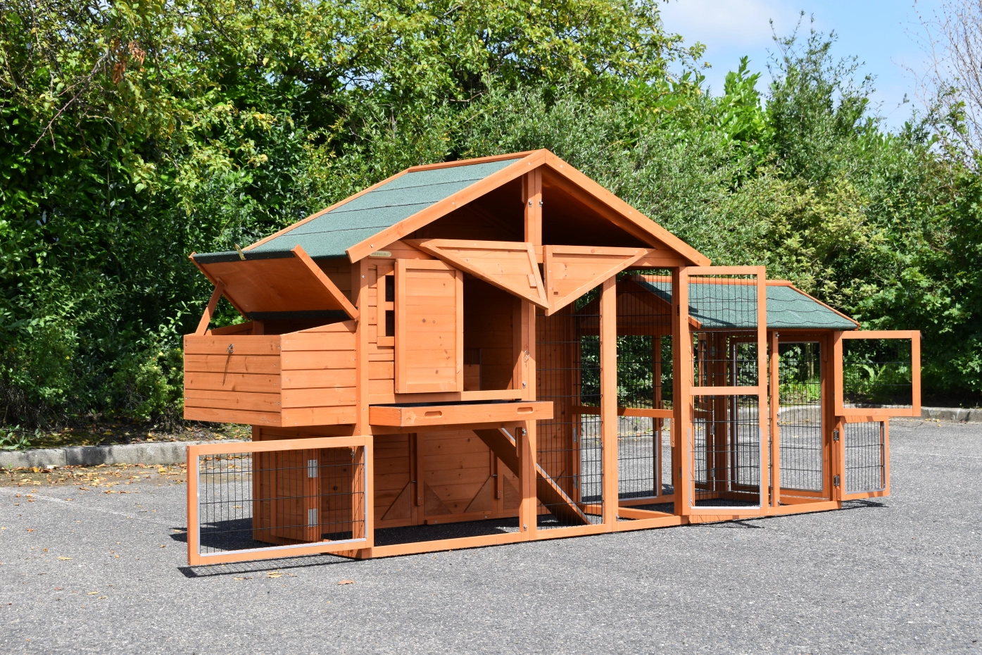 - Die Türen dieses Kaninchenstalls sind mit doppelten Schieberiegeln ausgestattet