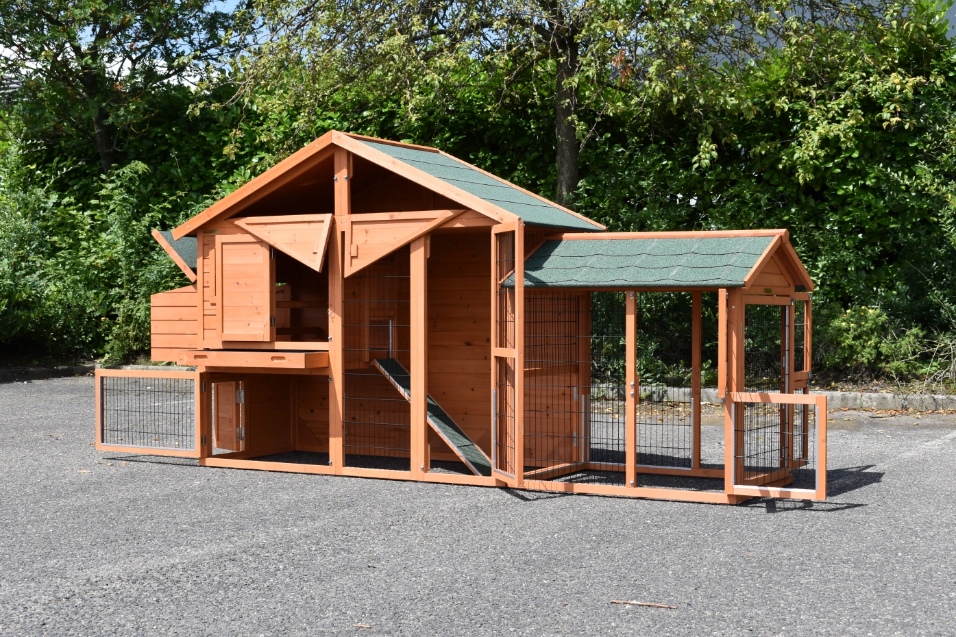 - Dieser Kaninchenstall ist mit einem Nistkasten ausgestattet