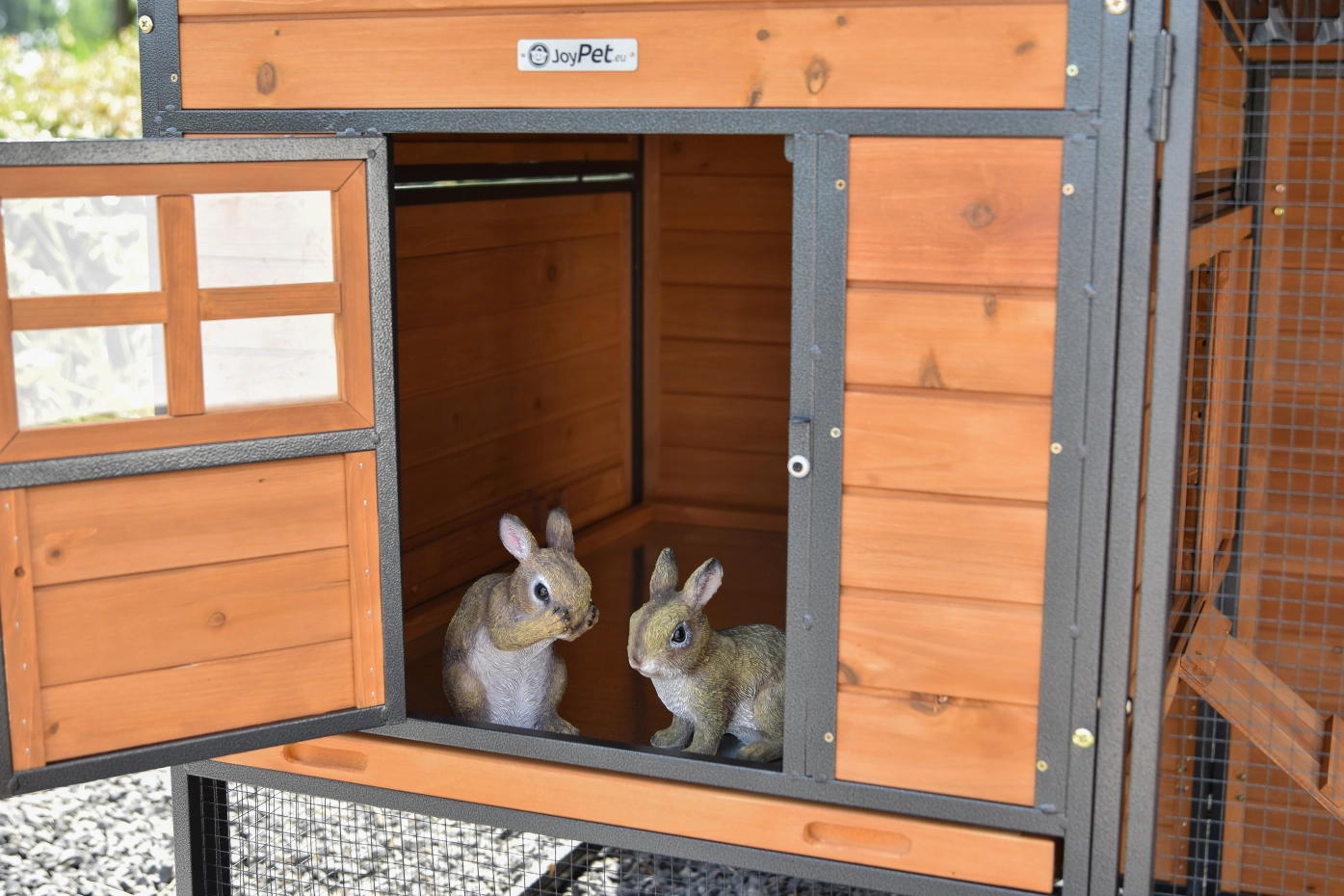 Der Kaninchenstall Judy ist sehr geräumig und praktisch. Er bietet Ihren Kaninchen einen komfortablen Aufenthalt und verfügt über einen großen Schlafbereich für zusätzlichen Schutz. Mit einer praktischen Reinigungsschublade und einem extra großen Auslauf ist er perfekt für 3 große oder bis zu 5 kleine Kaninchen geeignet.