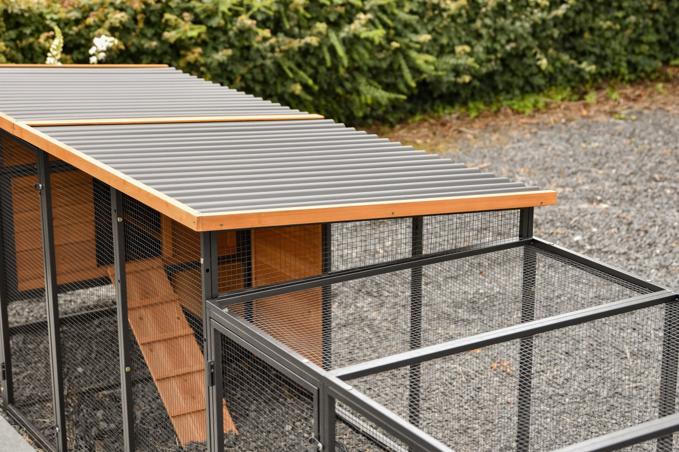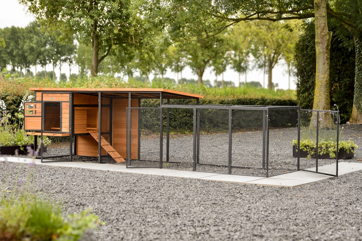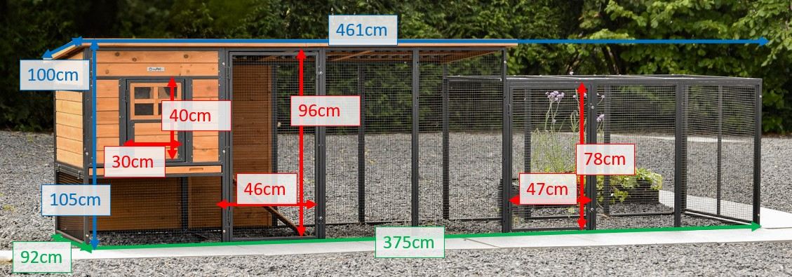 • Der Auslauf hat ein Dach aus Gitter (ca. 12x12mm)