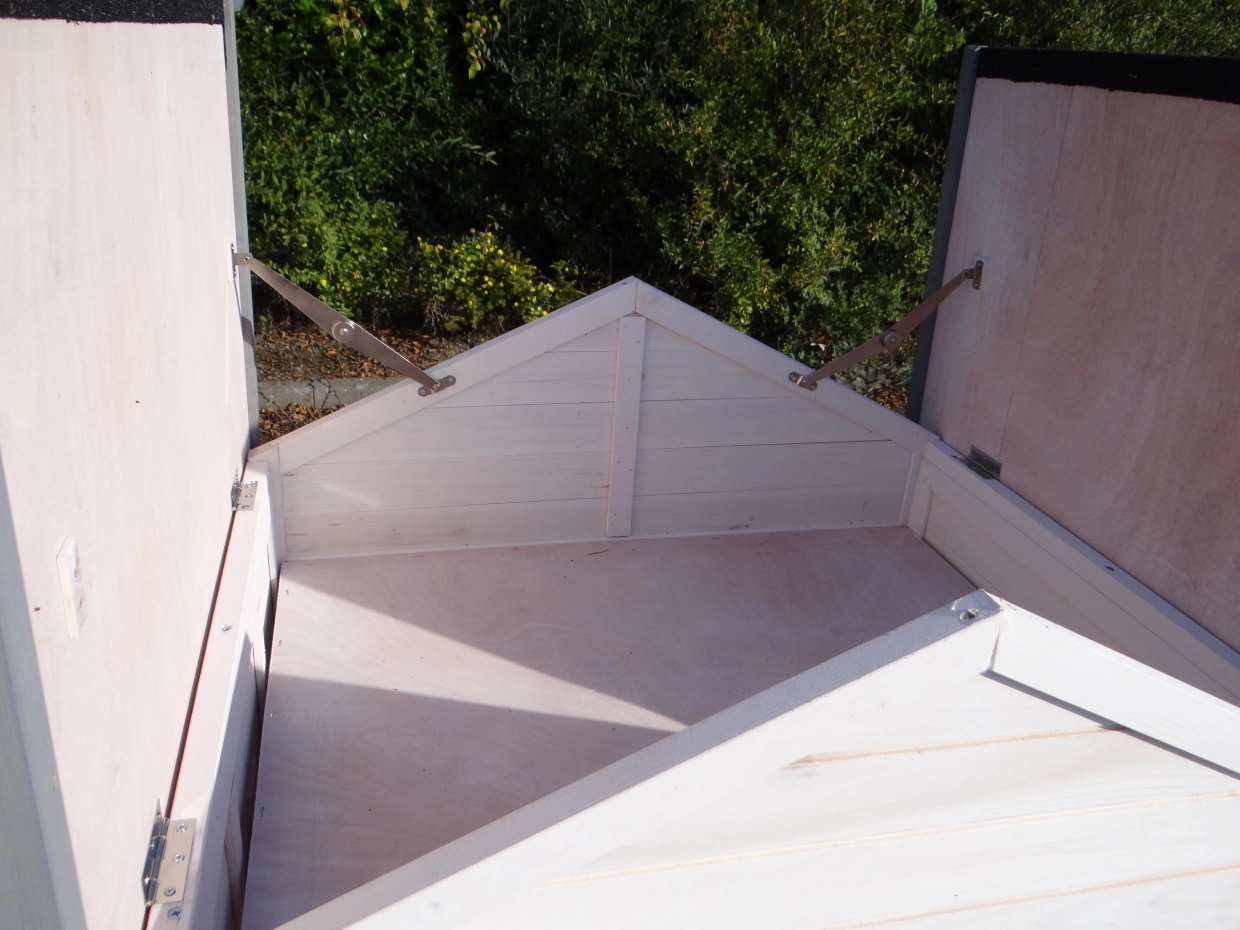 - Das Dach dieses Kaninchenstalls ist mit Dachpappe versehen.