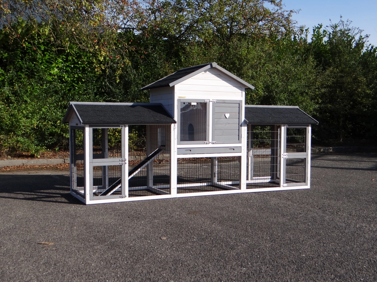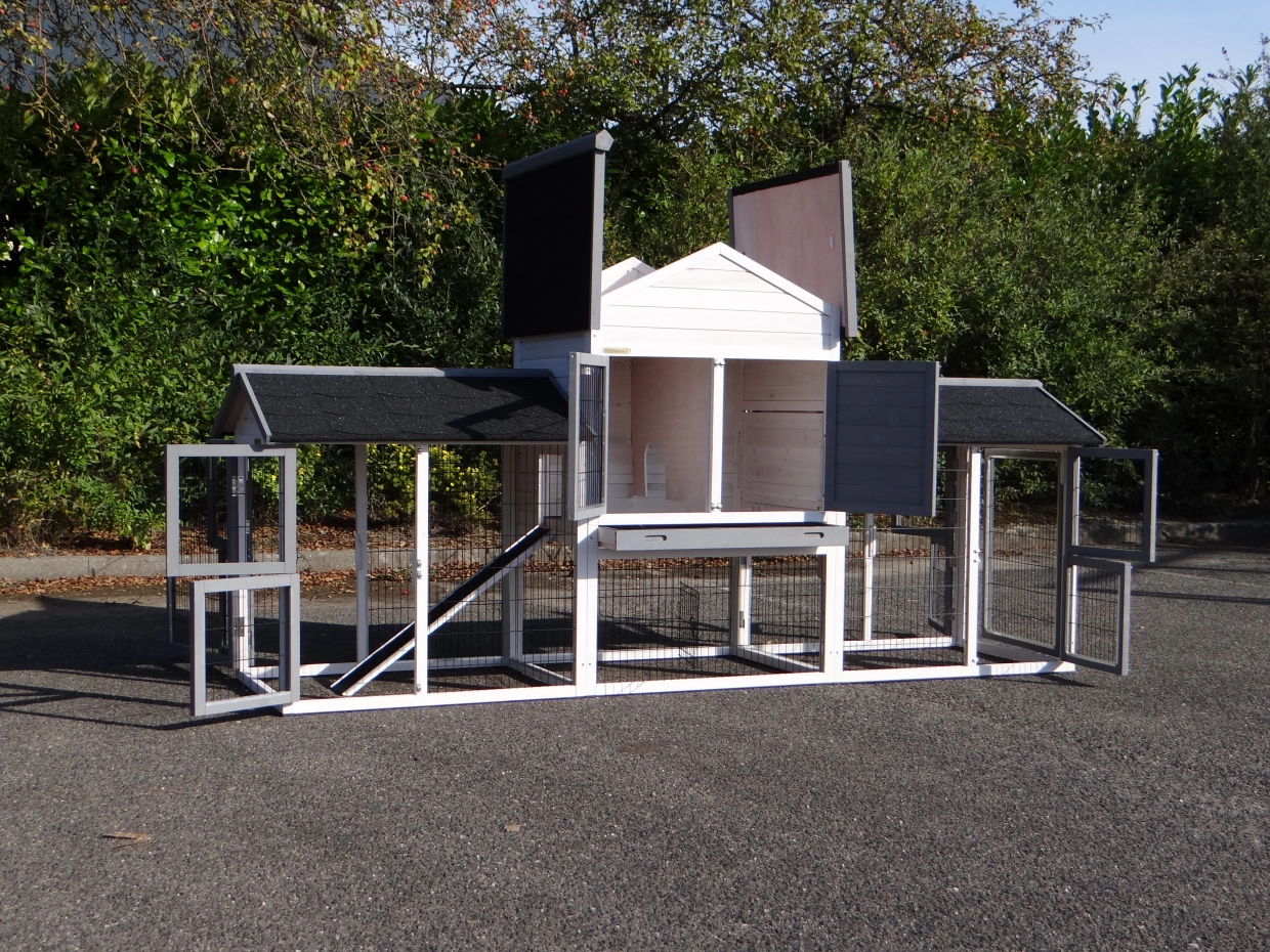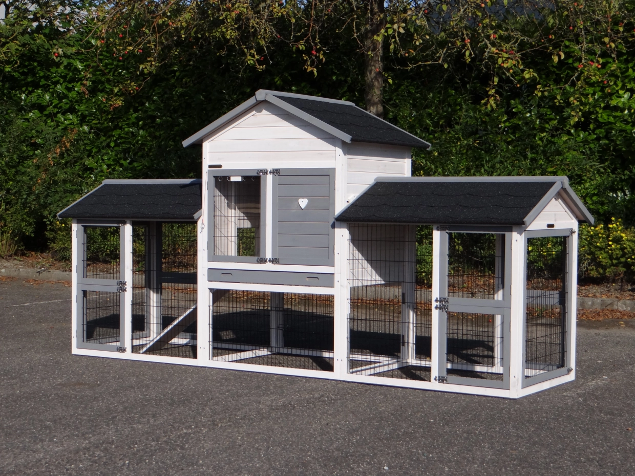 Kaninchenstall Prestige Medium Doppel mit Nageschutzstreifen, große Türen und Ausläufe ist ein schöne Stall für Ihre Kaninchen. Diese große Stall steht auf gummi Füßen, ein praktisch Stauraum, abschließbar Schlafraum und ein herausnehmbare Schublade. Der Kaninchenstall ist nicht nur schön, aber auch praktisch. Mit ein kleine Anpassung können Sie diese Stall auch spiegelverkehrt aufbauen.