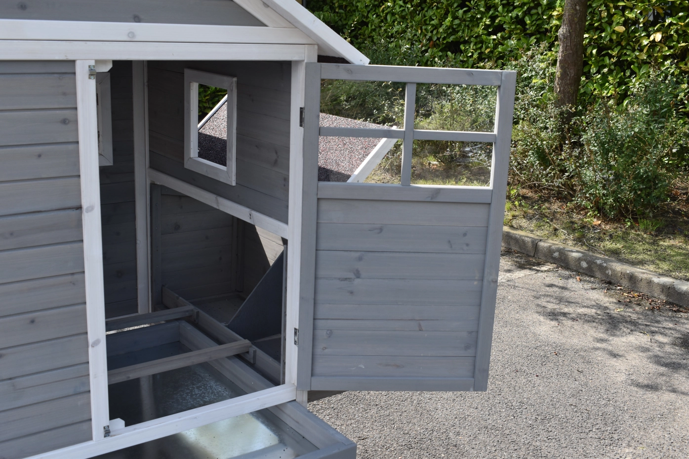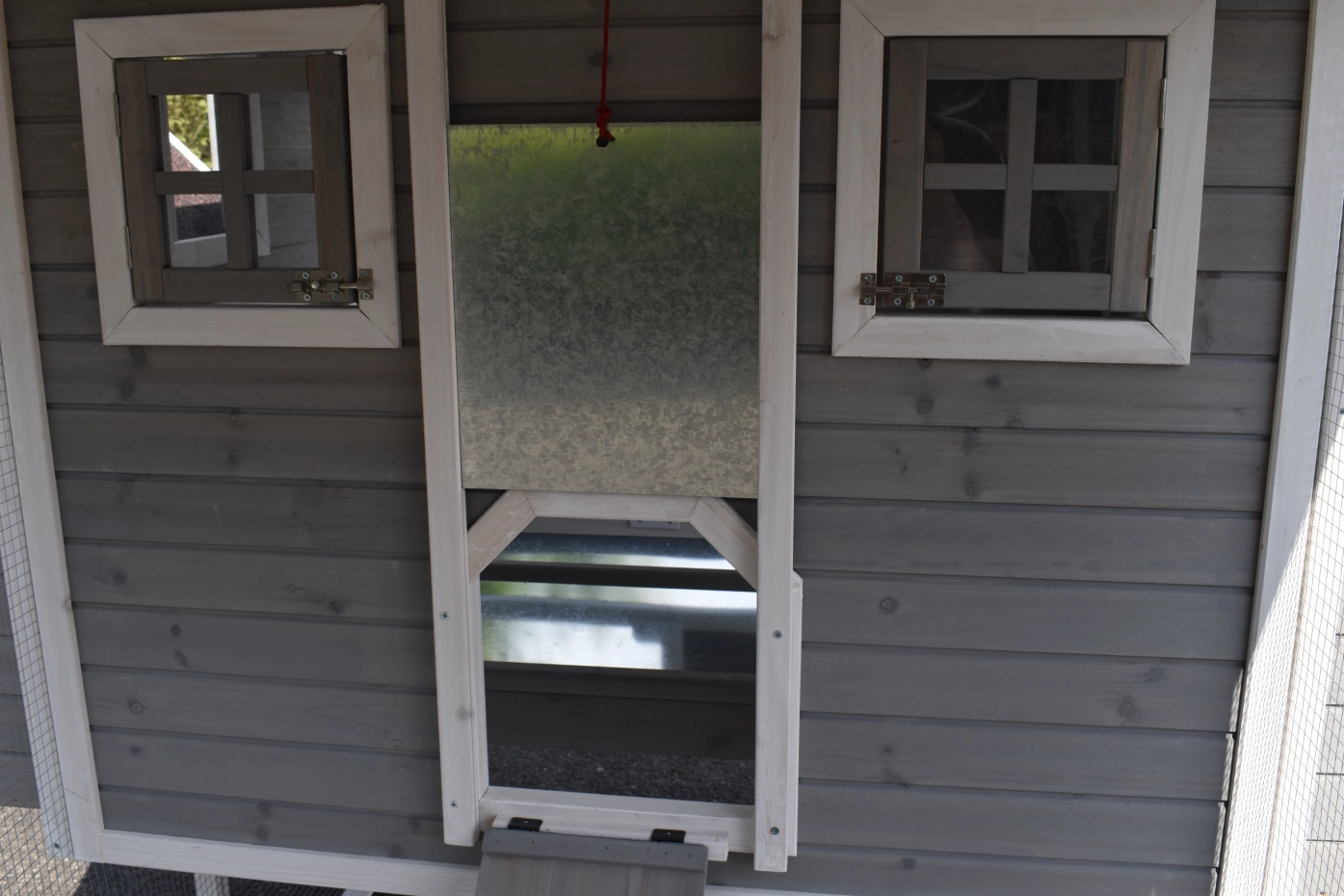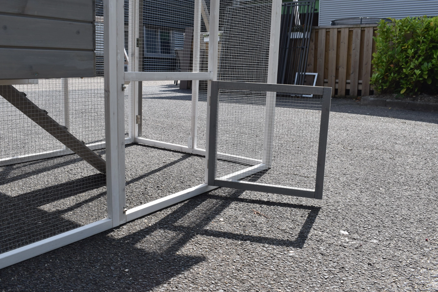 - Die Türen dieses Kaninchenstalls sind mit doppelten Schieberiegeln ausgestattet